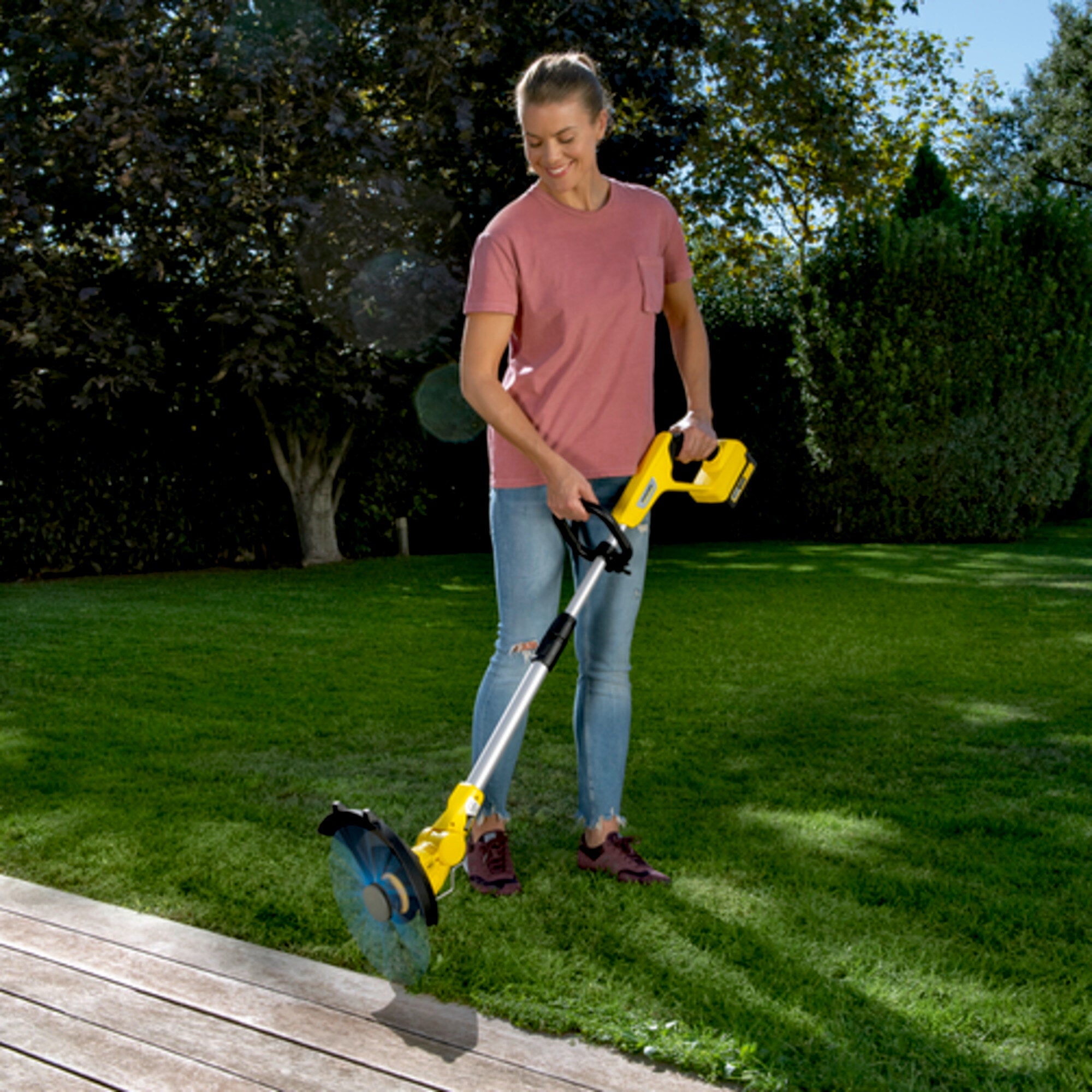 - Taille des borduresTête de coupe orientable pour des bordures de pelouse nettes le long des terrasses et des chemins.