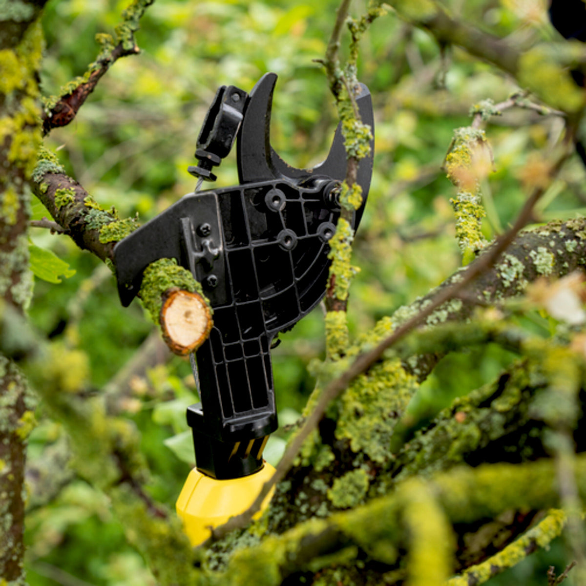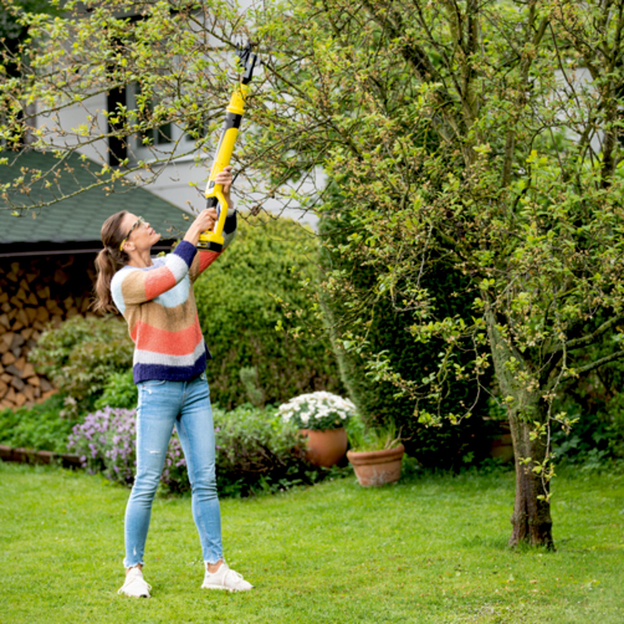 Les branches jusqu'à 3 centimètres de diamètre ne posent aucun problème au sécateur sans fil Kärcher. Grâce à sa lame bypass haut de gamme, elles peuvent être découpées en douceur, sans effort physique, peu importe la difficulté d'accès. Et un crochet supplémentaire à fixer sur l'outil permet de détacher les branches coincées dans l'arbre. La coupe des branches n'a jamais été aussi simple.