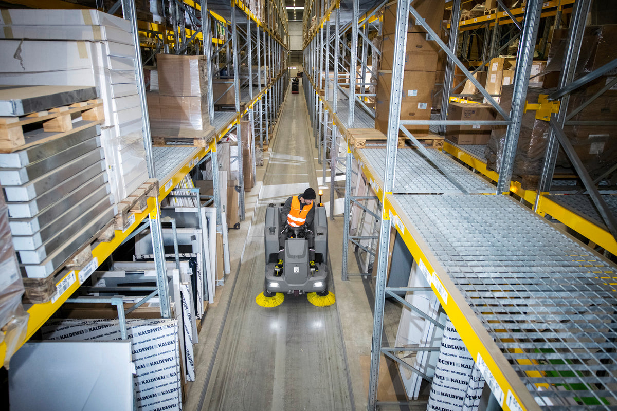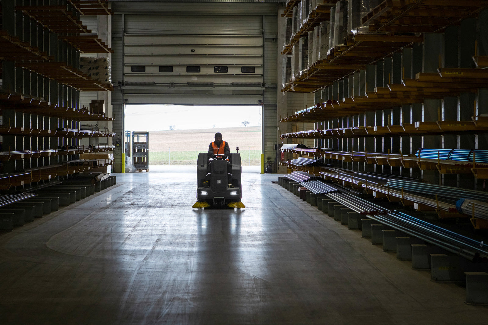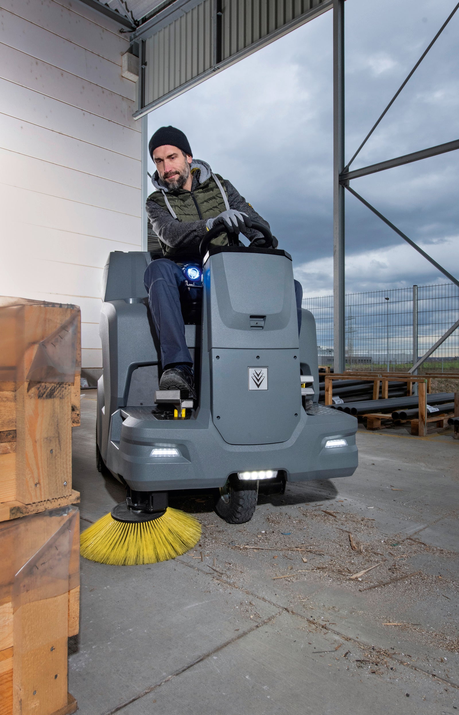 Kit d'éclairage de travail pour la machine autoportée KM 100/120 R pour l'éclairage de la surface à balayer. Idéal pour les zones mal éclairées, par ex. dans les parkings souterrains ou les entrepôts.