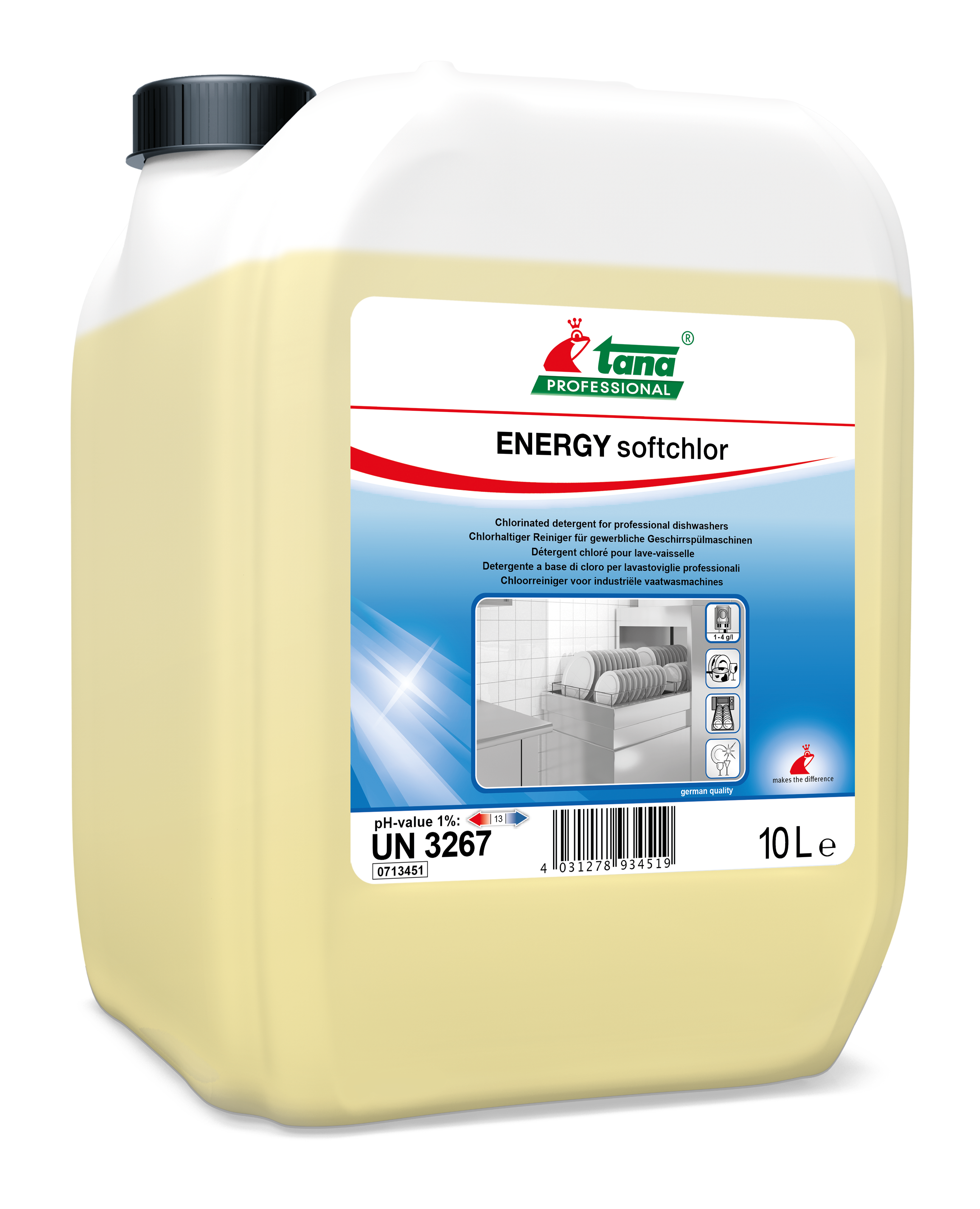 - ENERGY softchlor permet d’éliminer tous les résidus colorés grâce à ses agents chlorés, pour une vaisselle sans trace.
