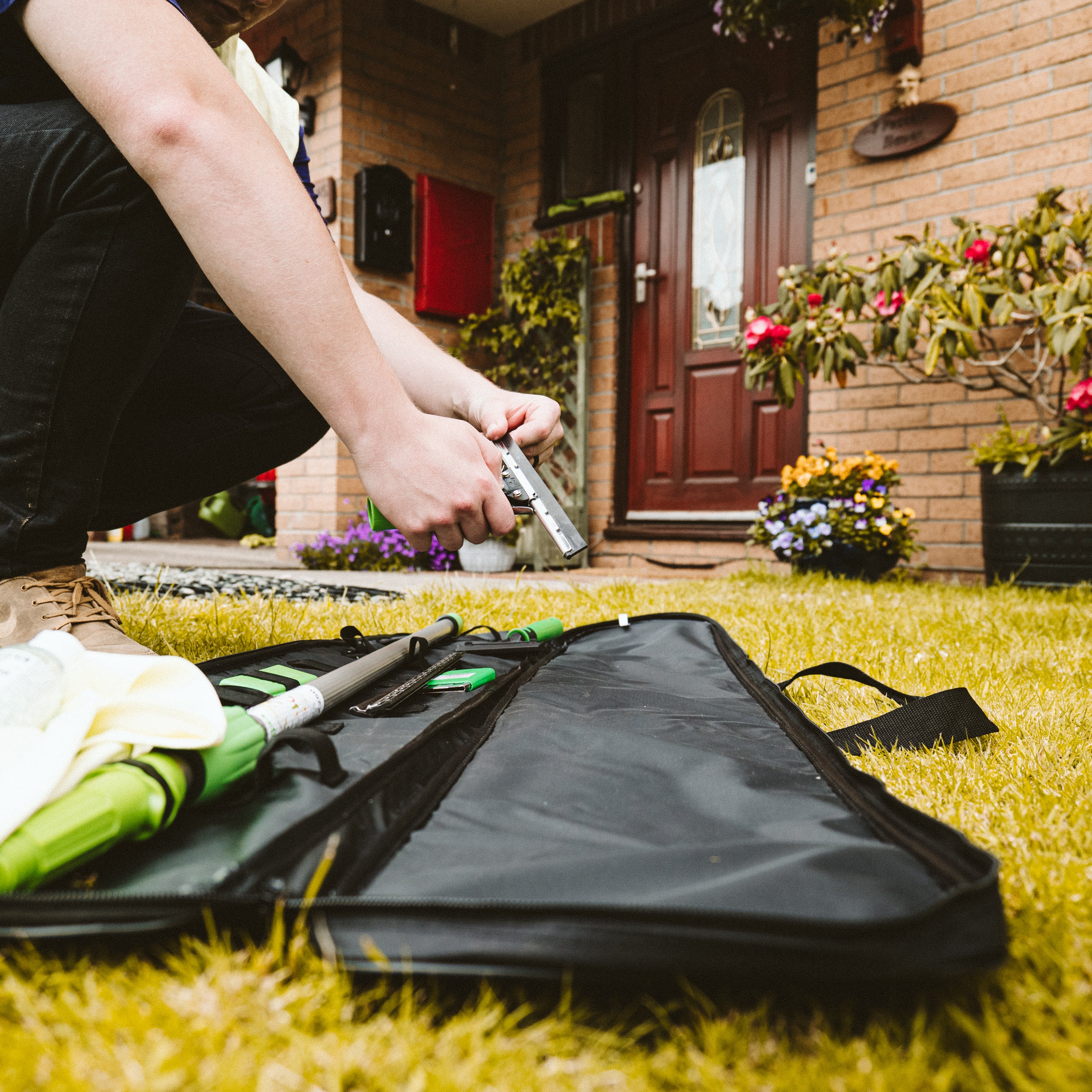 Set de nettoyage des vitres, de qualité supérieure, complet dans étui en nylon solide.