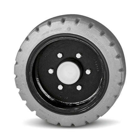 Roue avant de qualité en caoutchouc plein, non marquante et résistante aux hydrocarbures pour notre autolaveuse aspirante autoportée B 300 RI. Évite efficacement les traces de pneu sur les surfaces claires.