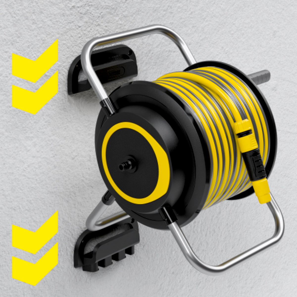 - Porte-pistolet pratiqueLes pistolets et les lances d’arrosage peuvent être aisément accrochés au support mural et rangés confortablement.