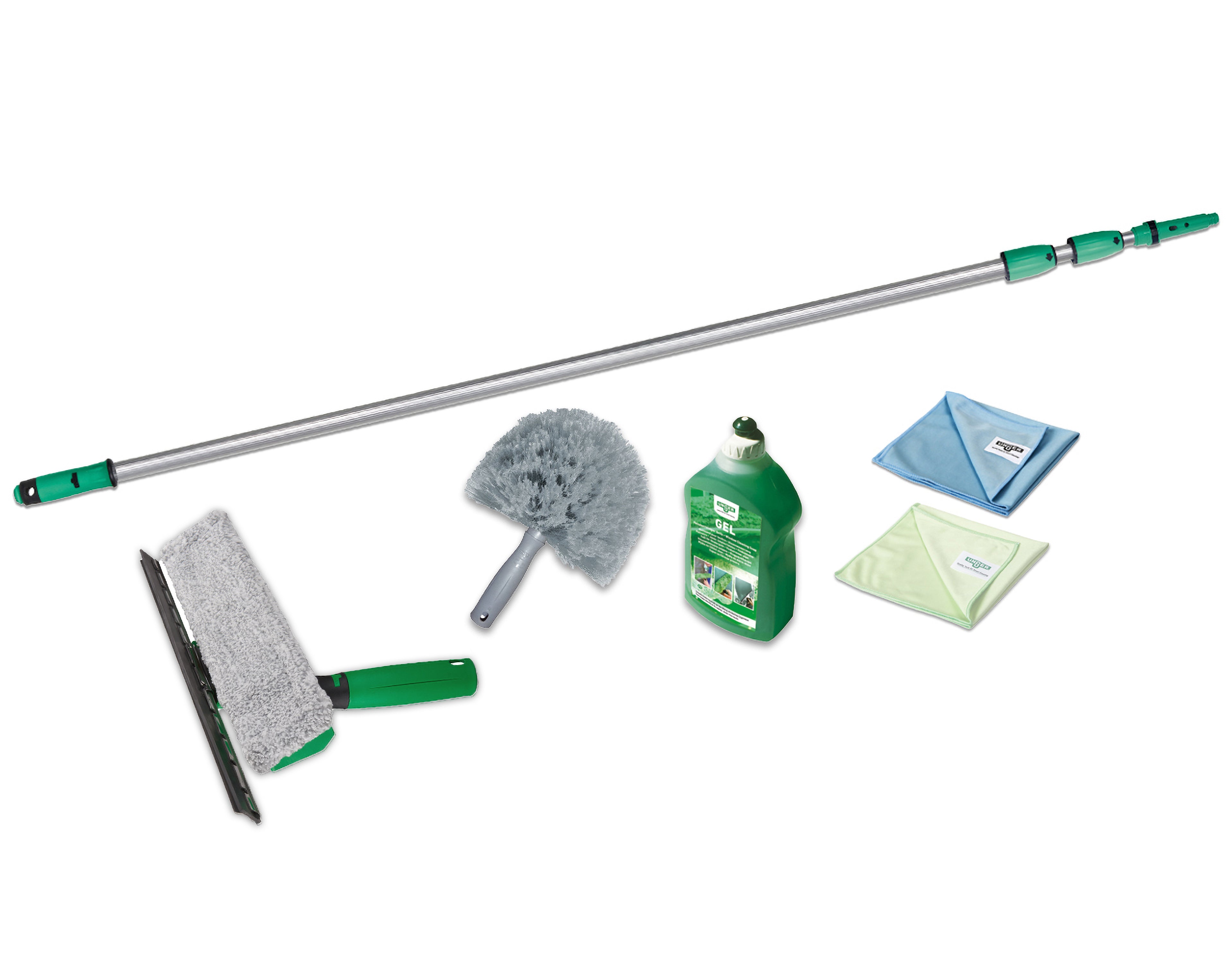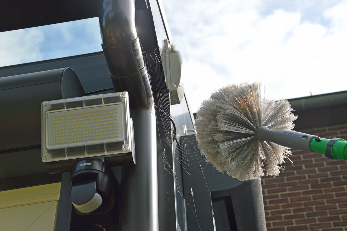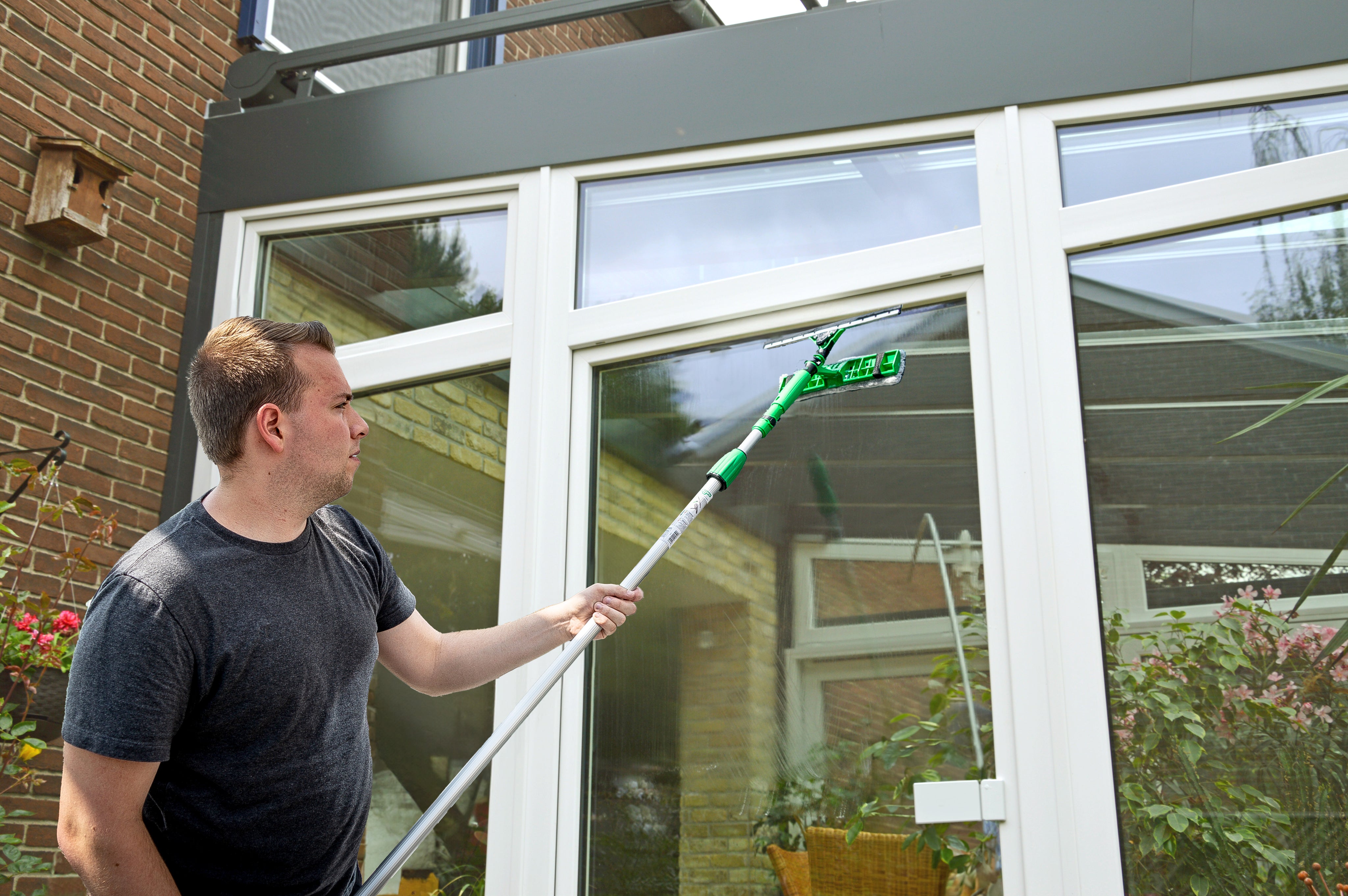 Le kit de nettoyage comprend des outils permettant de nettoyer facilement les vérandas, les verrières de toit, les façades vitrées et autres surfacess difficiles d'accès