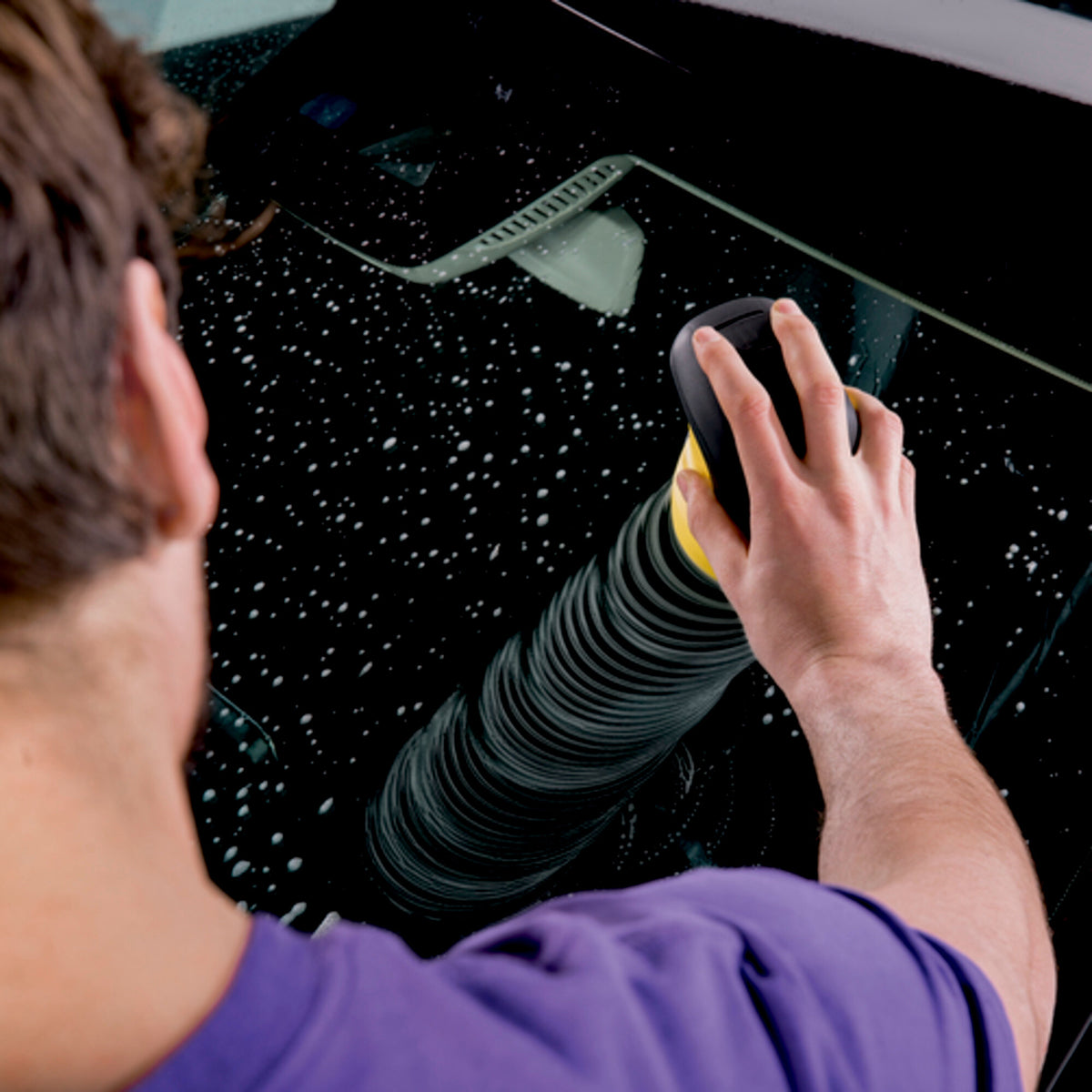 Un complément idéal : le kit de nettoyage pour vitres de voiture permet d'utiliser le dégivreur de pare-brise sur batterie de Kärcher tout au long de l'année. Le kit comprend 4 composants qui garantissent un nettoyage en profondeur des vitres de voiture : un disque interchangeable doté de crochets en plastique avec un pad de nettoyage comme accessoire, le nettoyant pour vitres de voiture RM 650 et une bonnette microfibres. Grâce au remplacement facile du disque abrasif de l'EDI 4 par le disque interchangeable avec accessoire, la puissante rotation du dégivreur de pare-brise sur batterie peut être utilisée pour décoller les saletés incrustées comme les résidus d'insectes ou les fientes. Le nettoyant pour vitres de voiture RM 650 inclus aide à décoller la saleté et fournit le film de liquide nécessaire, sans aucune utilisation supplémentaire d'eau. La bonnette microfibres douce garantit un résultat sans traces. Le kit de nettoyage pour vitres de voiture est l'accessoire parfait pour un nettoyage d'appoint rapide. Le pad de nettoyage ainsi que la bonnette microfibres sont lavables et par conséquent réutilisables.