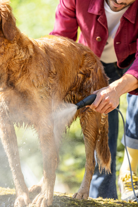 Grâce à son jet à douche très doux et agréable, la buse conique convient parfaitement au nettoyage de vos animaux domestiques, comme les chiens, ou uniquement de son poil. Idéal pour remettre votre chien dans la voiture ou le faire renter dans votre maison ou appartement après une promenade. La buse forme un jet à pression basse (comparable au jet d'un robinet ménager) et est par conséquent parfaitement sûre pour être utilisée sur des animaux.