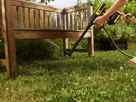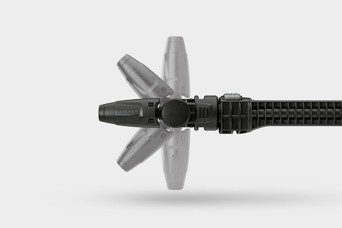 Les zones difficiles à atteindre ne seront plus un obstacle, grâce à la lance d'arrosage variable VJ 24 avec joint flexible ajustable à 360°. Le jet plat intégré élimine efficacement les salissures et le raccord Quick Connect permet de fixer rapidement et facilement un autre accessoire d'une seule main. La lance VJ 24 est compatible avec tous les modèles KHB et OC 6-18.