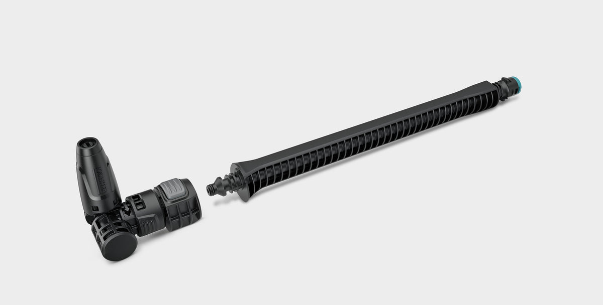 Les zones difficiles à atteindre ne seront plus un obstacle, grâce à la lance d'arrosage variable VJ 24 portable avec joint flexible ajustable à 360°. Le tube rallonge assure un travail ergonomique et protège l'utilisateur contre les éclaboussures grâce à la distance supplémentaire. En outre, le raccord Quick Connect entre la tête de buse et le tube rallonge permet de fixer rapidement et facilement un autre accessoire pour nettoyeur portable d'une seule main. La VJ 24 portable est compatible avec le nettoyeur à pression sans fil KHB 5 Battery.