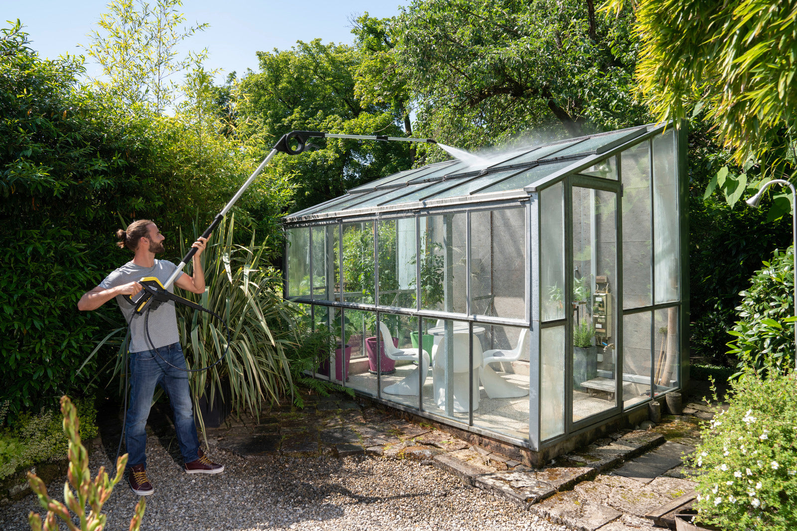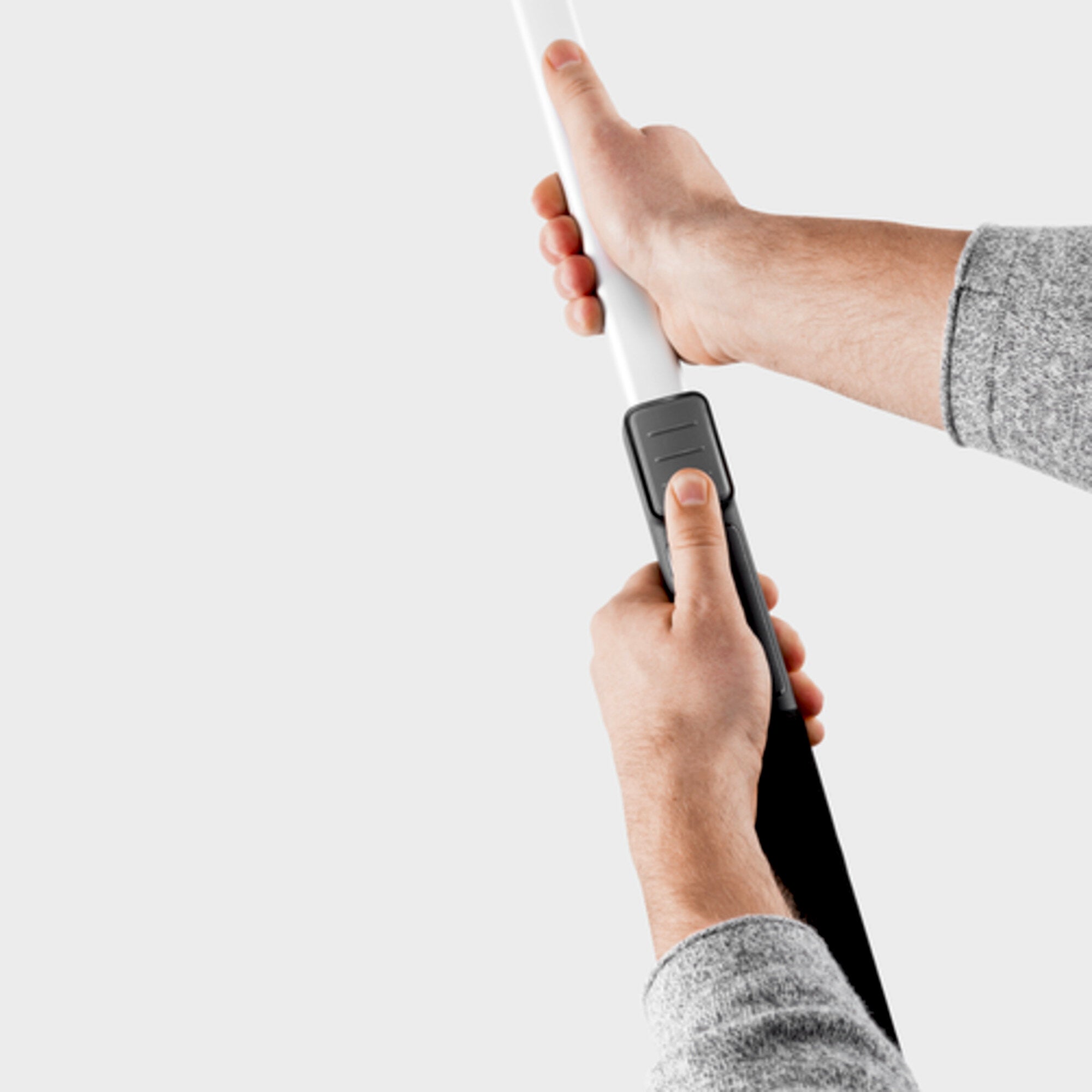 Avec la lance télescopique, même les endroits difficilement accessibles tels que les façades peuvent être nettoyés rapidement et sans effort. L'articulation réglable à 180° est un atout supplémentaire et favorise notamment le nettoyage de jardins d'hiver, toits inclinés et abris de voiture. Grâce au mécanisme télescopique pratique sur simple pression d'un bouton, son utilisation est très simple. La lance télescopique est extensible de 1,20 à 3,70 mètres et permet ainsi le nettoyage de surfaces jusqu'à une hauteur de 5 mètres. Tous les pistolets peuvent être facilement fixés. En cas d'utilisation avec un pistolet Full Control Plus ou Smart Control, la pression appliquée peut être aisément régulée.