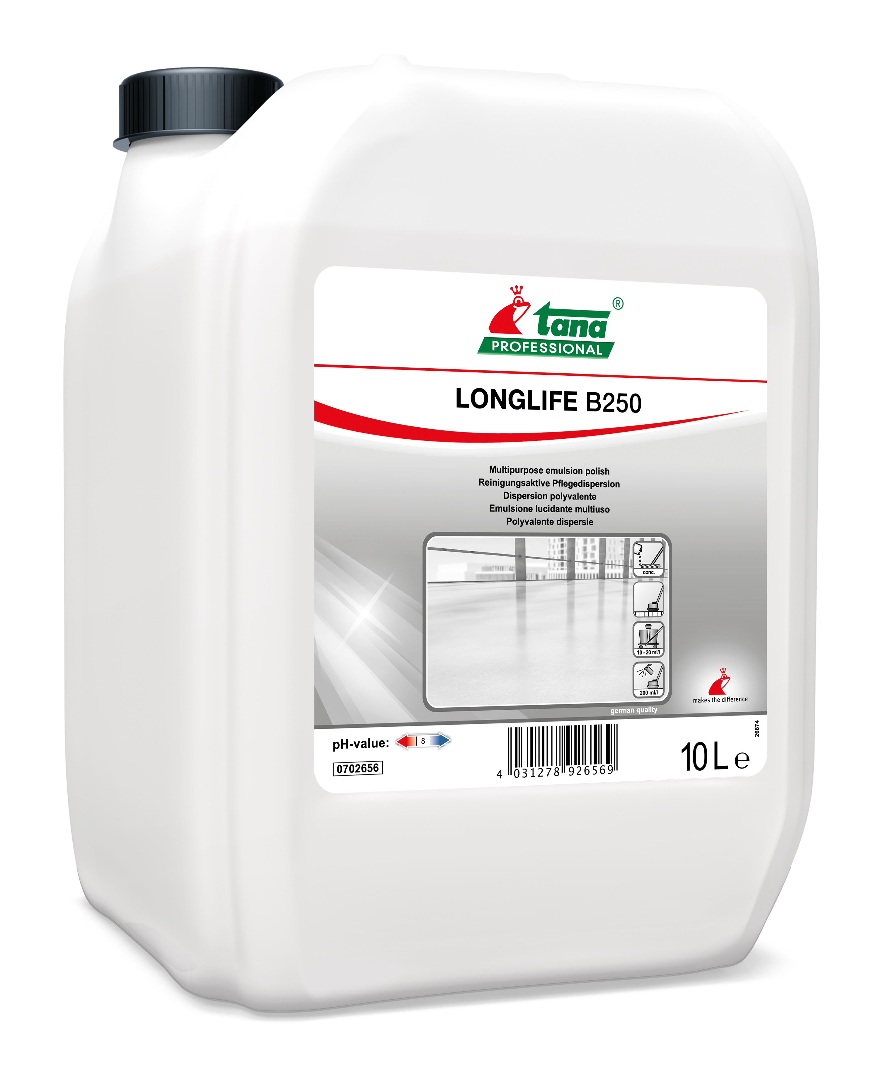 - LONGLIFE B250 forme sur le sol un film non glissant (DIN51131). La protection est à la fois élastique, robuste et satiné.