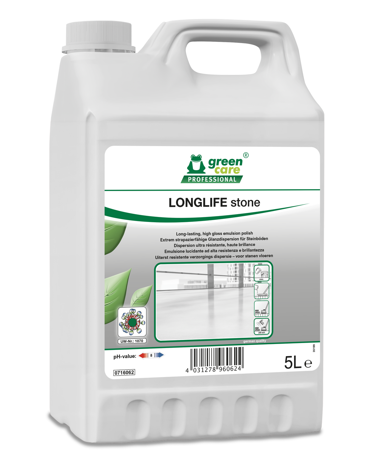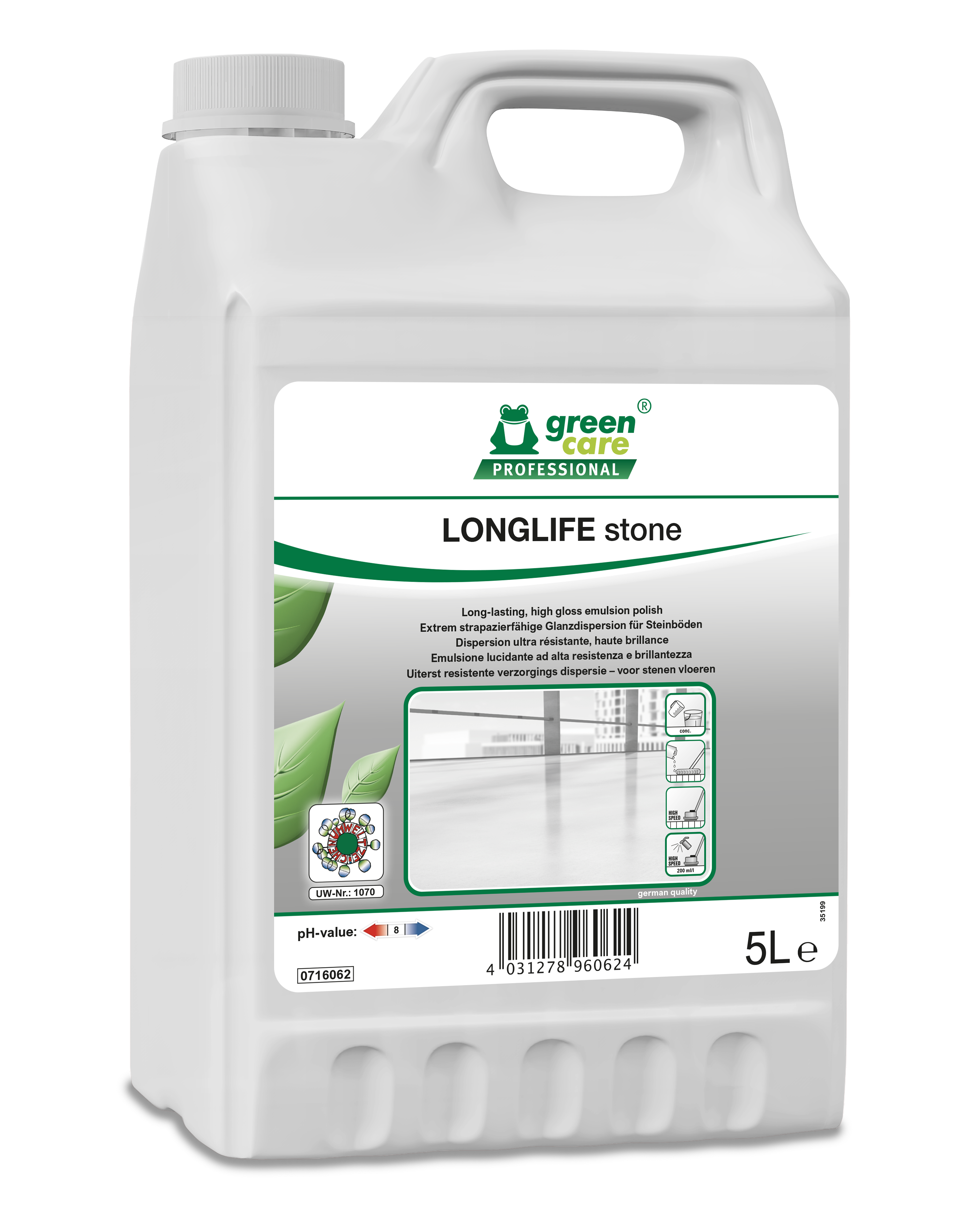 - LONGLIFE stone est une émulsion haute brillance et résistante développée pour les sols durs poreux.