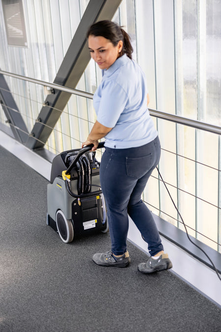Le BRC 30/15 C est la machine idéale pour le nettoyage en profondeur des moquettes jusqu'au cœur des fibres sur les petites surfaces. Sa brosse à suspension flottante permet d'obtenir des résultats de nettoyage parfaits, même sur les surfaces irrégulières. Le BRC 30/15 peut également être utilisé de manière flexible pour le nettoyage d'appoint des moquettes par préaspersion du détergent I-Capsol ou pour un détachage ponctuel.