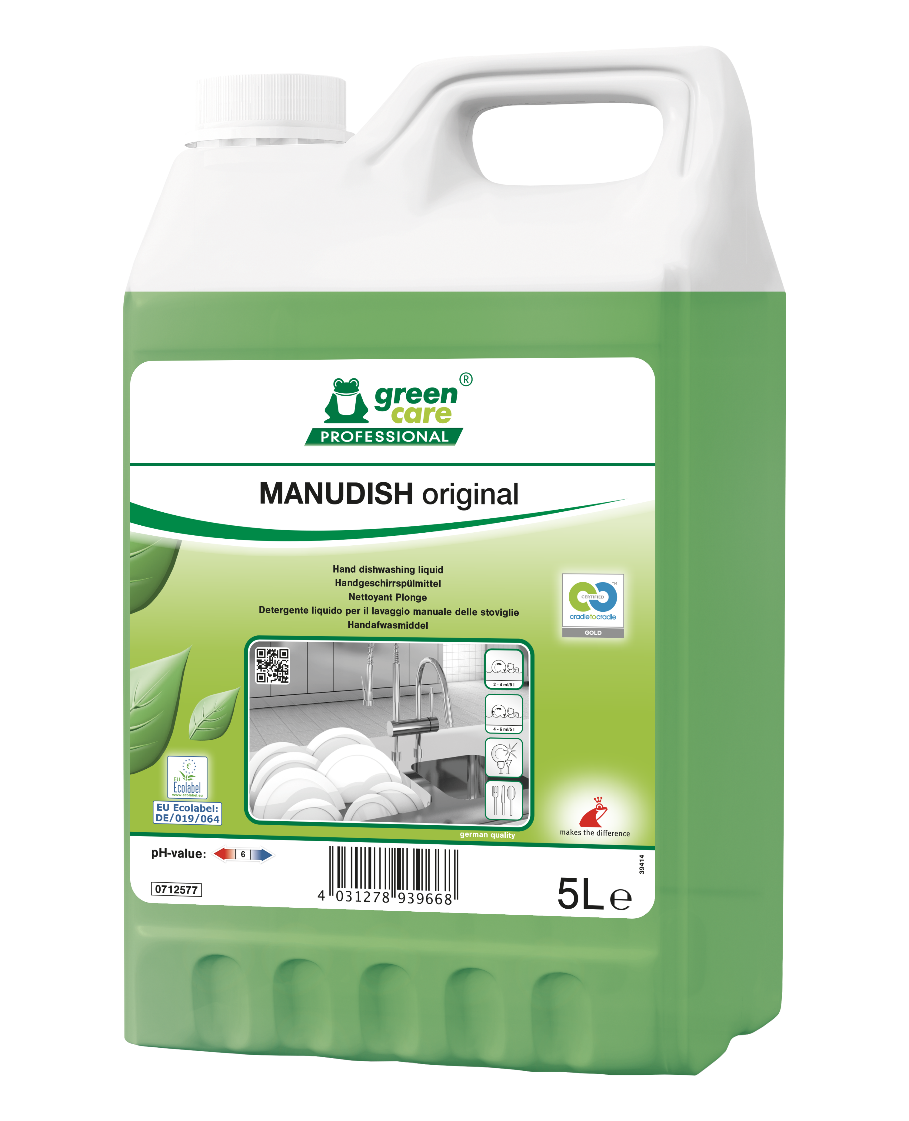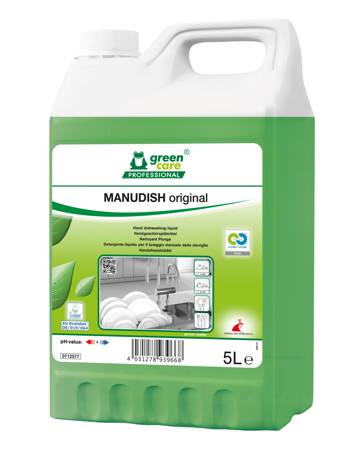 - MANUDISH original est un nettoyant plonge efficace, aux propriétés environnementales remarquables. MANUDISH original est vertueux pour l’environnement et l’utilisateur, car respecte les écosystèmes.