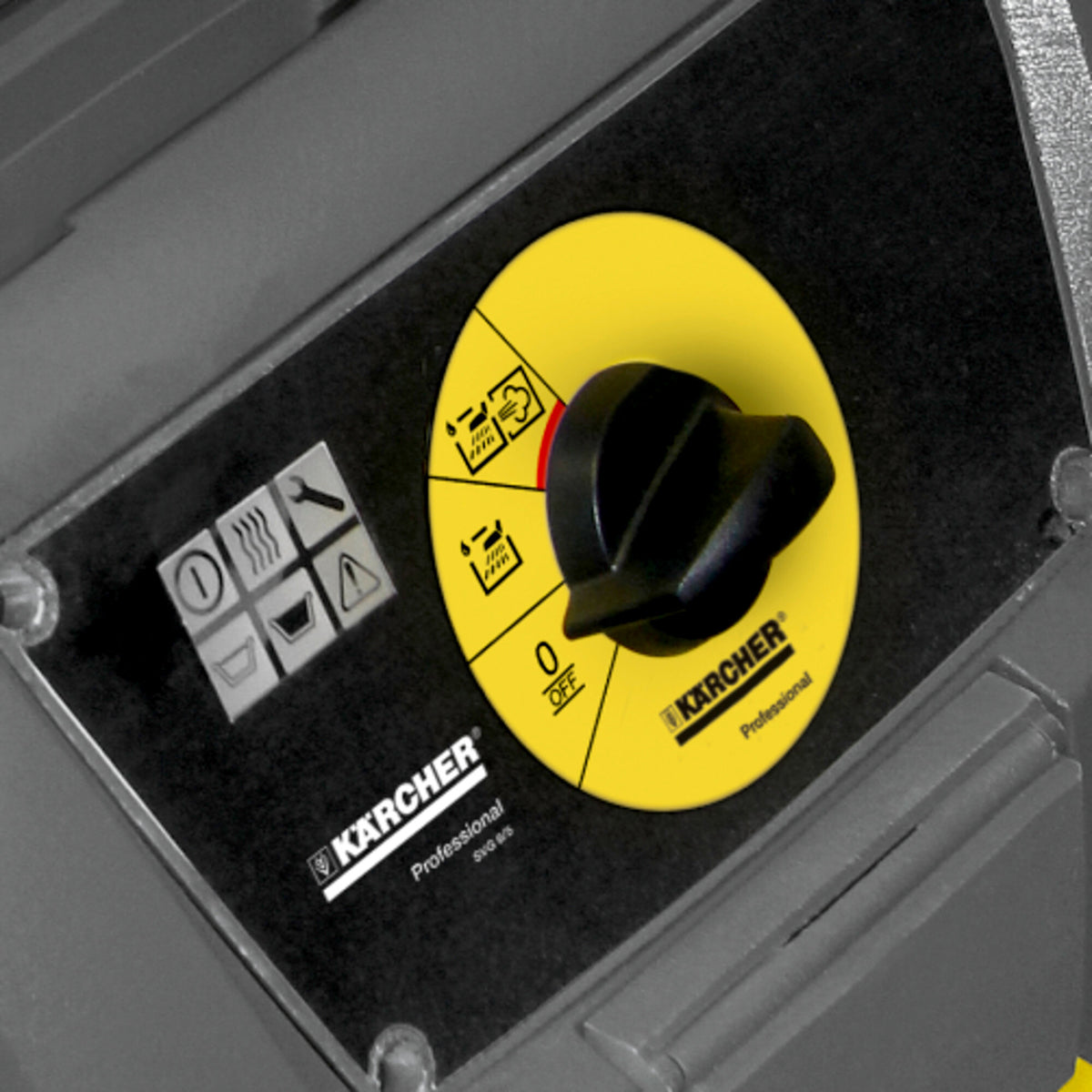 L'aspirateur vapeur SGV 8/5 Classic, facile à utiliser, offre un excellent rapport qualité/prix et une puissance de nettoyage très élevée. Le nettoyage s'effectue de manière écologique, sans produits chimiques, avec une pression de la vapeur élevée (8 bars), une température de l'eau chaude d'environ 70 °C et un réglage de la quantité de vapeur à 3 niveaux. L'appareil impressionne par son utilisation extrêmement simple et confortable grâce au commutateur rotatif EASY Operation qui permet de commander les 3 modes de fonctionnement vapeur/aspiration. Pendant l'utilisation, le pistolet à vapeur/aspiration ergonomique permet une commande directe, rapide et flexible du débit de vapeur, du mode de rinçage ainsi que de la fonction d'aspiration. L'utilisateur est informé en permanence de l'état de fonctionnement ou d'éventuels dysfonctionnements par un affichage LED en couleur. Pour que les nombreux accessoires soient toujours à portée de main, ils sont rangés directement sur l'appareil, à l'abri de la saleté.