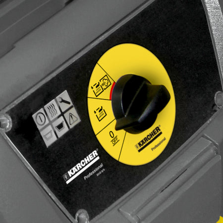 - Commutateur rotatif EASY Operation avec 3 fonctionsParticulièrement facile à utiliser grâce à des symboles explicites. Ne requiert aucune formation longue.Interrupteur marche/arrêt et nettoyeur vapeur/aspiration de surfaces humides.Rincer à l'eau froide : retirer préalablement les salissures tenaces des surfaces avec de l'eau froide.