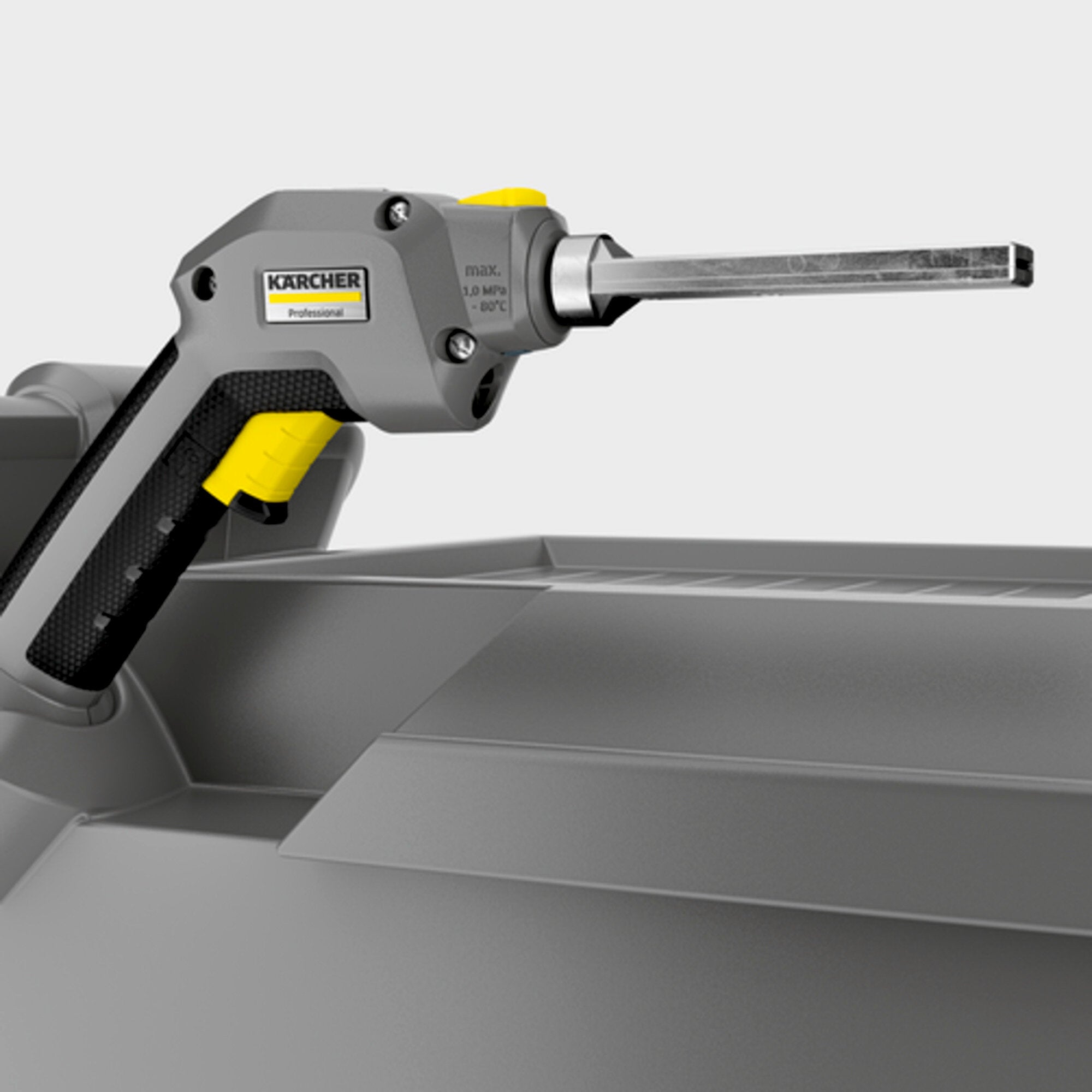 - Pistolet de pulvérisation ergonomiqueChangement de buse rapide et facile grâce aux attaches rapides.Avec éclairage intégré.Bouton Marche/Arrêt neige carbonique directement sur la poignée-pistolet.