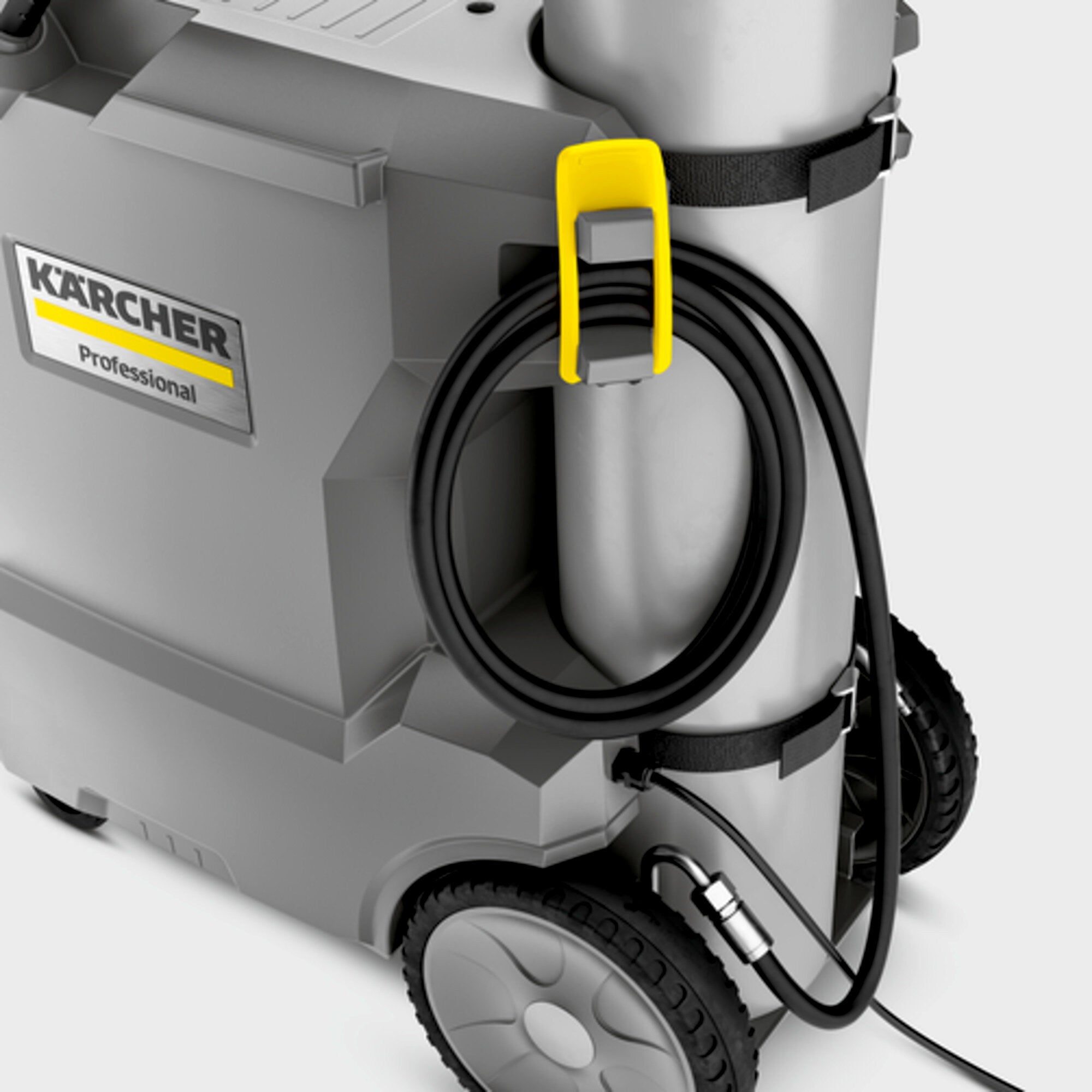 Une utilisation spontanée d'appareils de nettoyage cryogénique dans la maintenance des machines ou des véhicules, pour le nettoyage dans les processus de fabrication ou pour le nettoyage de véhicules n'était guère envisageable jusqu'à présent, étant donné que la logistique relative à la neige carbonique nécessaire en coulisse est trop coûteuse pour les utilisations à court terme. Avec l'IB 10/8 L2P, le premier appareil de nettoyage cryogénique au monde à disposer d'une production de neige carbonique intégrée à partir de CO₂ liquide, ce n'est désormais plus un problème. Grâce à un procédé innovant, des pellets de neige carbonique sont produits immédiatement à partir de CO₂ liquide, L2P étant ici l'abréviation de « Liquid to Pellet ». Étant donné que le CO₂ liquide se conserve pratiquement sans limite dans des bouteilles de gaz, la logistique habituelle relative à la neige carbonique est supprimée. De plus, la très faible consommation d'air comprimé de l'appareil réduit également considérablement l'infrastructure nécessaire. Parallèlement, tous les avantages de la technologie cryogénique Kärcher sont conservés. L'IB 10/8 L2P permet un nettoyage particulièrement peu agressif, même en cas de contours complexes tels que les fentes, les logements ou les rainures et en cas de salissures tenaces telles que les dépôts incrustés. Les résidus de produit de sablage sont ainsi efficacement évités.