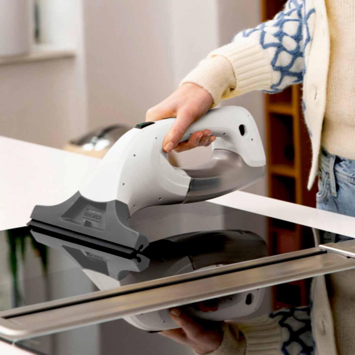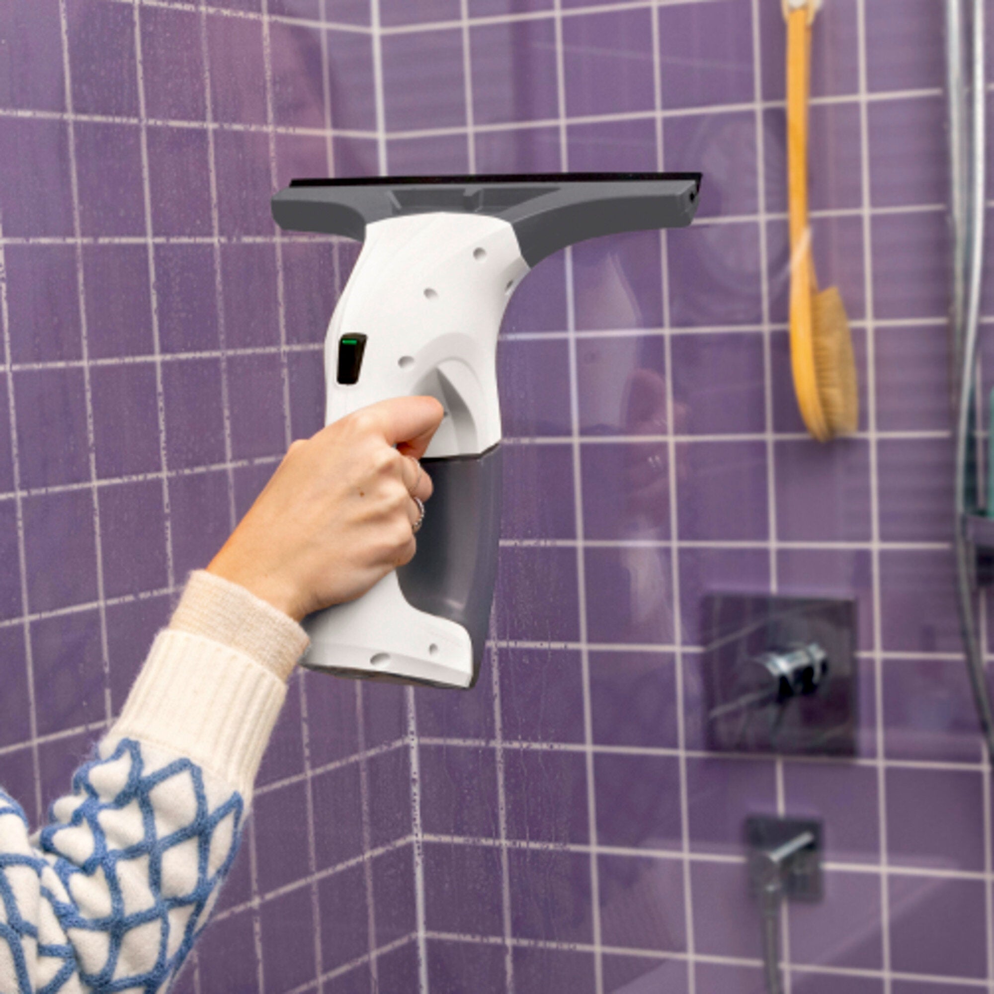 - Utilisation sans fil : le nettoyeur de vitres dispose d'une batterie intégrée qui permet une autonomie de 25 min. L'affichage LED renseigne sur l'état de charge de la batterie pendant utilisation