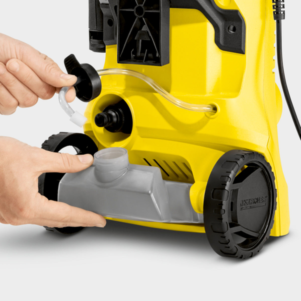 - Solution propre du réservoirPropre et pratique : le réservoir à détergent peut être retiré pour le remplissage.Le réservoir de détergent pratique simplifie l’application du détergent.Les détergents Kärcher augmentent l'efficacité et prolongent les effets positifs du résultat à travers la protection et l'entretien.