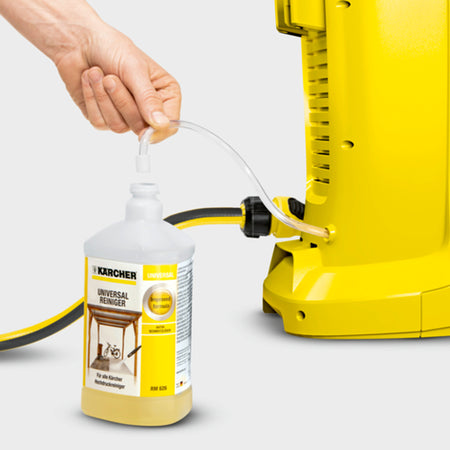 - Utilisation de détergentsTuyau d'aspiration pour l'utilisation de détergents.Les détergents Kärcher augmentent l'efficacité et prolongent les effets positifs du résultat à travers la protection et l'entretien.