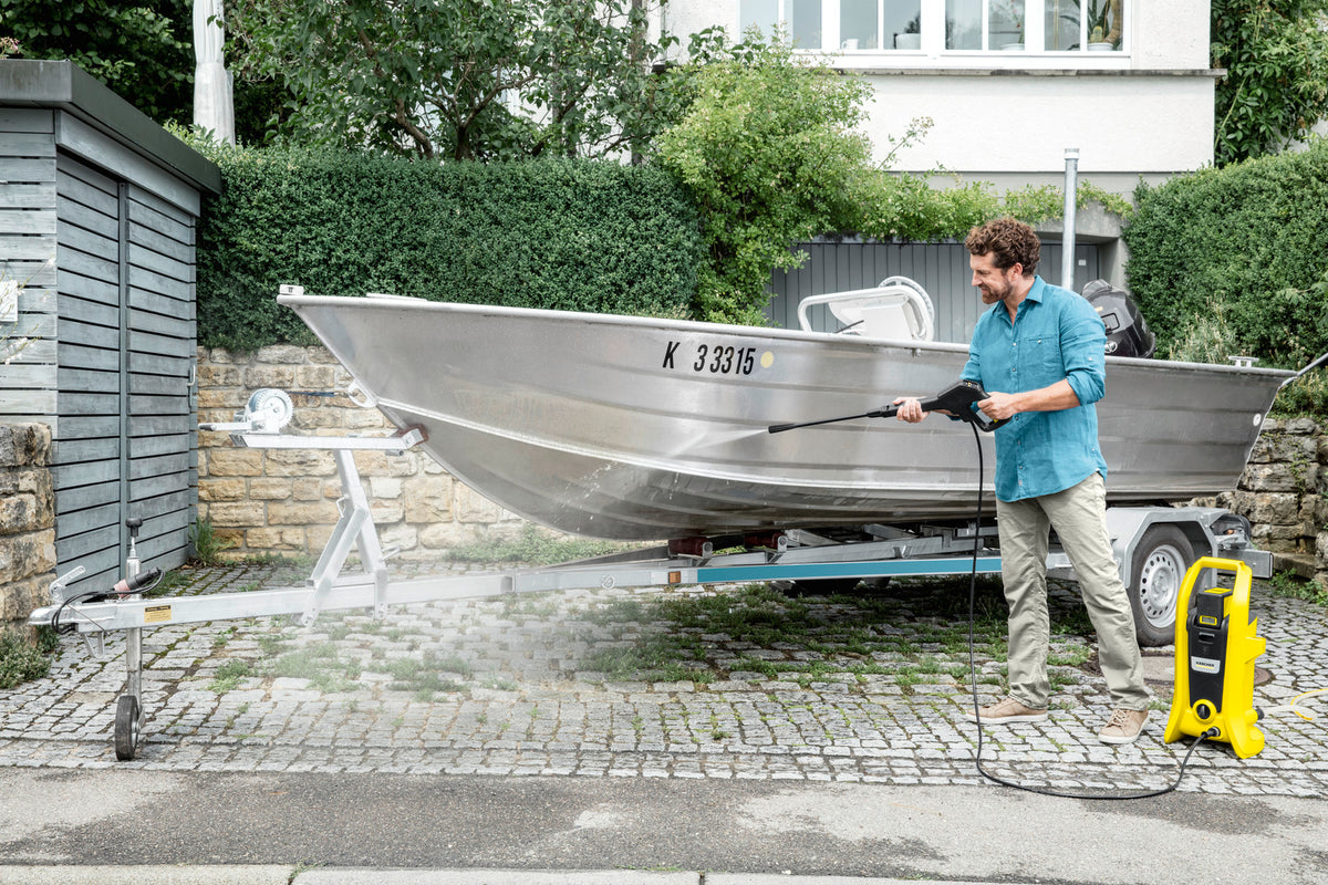 Vous n'avez pas d'alimentation secteur à portée de main ? Pas de problème ! Les nouveaux appareils sans fil de la plateforme de batterie Kärcher Battery Power 36 V permettent un nettoyage flexible. Mobilier de jardin, poubelles, voitures compactes ou bateaux – le nettoyeur sans fil haute pression K 2 Battery est idéal pour toutes les tâches de nettoyage mineures à l'extérieur de la maison. Grâce aux modes standard, boost et détergent, les divers objets à nettoyer peuvent être traités avec une pression parfaitement ajustée. Pour utiliser les différents niveaux de pression, il vous suffit de changer de lance. La possibilité d'utilisation d'un flexible d'aspiration Kärcher pour aspirer l'eau depuis des sources d'eau alternatives offre une flexibilité encore plus grande. Grâce à la technologie temps réel innovante, l'afficheur LCD de la batterie indique à tout moment la capacité de la batterie. La capacité de la batterie est indiquée en minutes pendant le travail et la charge puis en pourcentage lors du stockage. La batterie interchangeable Lithium-ion endurante et puissante ainsi que le chargeur sont inclus et compatibles avec tous les appareils de la plateforme de batterie Kärcher Battery Power 36 V.
