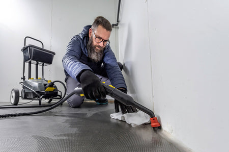 Le SG 4/4 est un nettoyeur vapeur compact et robuste qui, grâce à ses 4 bar de pression de la vapeur, s'illustre par sa puissance de nettoyage exceptionnelle et sa fonction de désinfection certifiée*. Le réglage en continu de la quantité de vapeur et la fonction VapoHydro pour un réglage progressif de la saturation de vapeur permettent une adaptation parfaite de l'appareil à la tâche de nettoyage. Le système à deux réservoirs avec préchauffage rapide peut être rempli en continu et permet ainsi un travail prolongé sans interruption. L'appareil dispose d'un indicateur de température intégré, fonctionne sans aucun additif chimique et s'utilise de manière universelle. Le vaste éventail d'équipements comprend entre autres 2 suceurs pour sol (pour le nettoyage abrasif et hygiénique), un compartiment de rangement pour accessoires intégré, un crochet pour câble intégré et un support pour tubes pour un rangement peu encombrant. (* Selon EN 16615, sol en PVC, appareil : SG 4/4 (suceur pour sol avec lames de racleur, 30 cm/s, pression max. de la vapeur, au min. VapoHydro) bactérie d'essai : Enterococcus hirae ATCC 10541, virus d'essai : MVA, norovirus murin, adénovirus.)