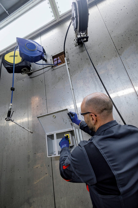 - Rapidement prêt à l'emploi à tout momentDisponible par simple pression sur un bouton, sans temps de préparation ni transport d'appareils mobiles.La machine est toujours prête à l'emploi pour une productivité et une flexibilité maximales.Dès que le pistolet est actionné, la pompe se met en route. Cela permet de travailler de manière confortable quel que soit le poste de travail.