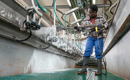 Ce nettoyeur haute pression stationnaire à eau froide pour une température d'arrivée d'eau maximale de 60 °C s'illustre par un débit de 1 300 l/h et une pression de service de 180 bar. La puissance élevée permet une utilisation continue en conditions difficiles, par exemple dans le secteur agricole ou industriel. Le boîtier robuste et le cadre en acier revêtu par poudre, la pompe à vilebrequin solide avec culasse en laiton ainsi que le moteur électrique lent à 4 pôles avec refroidissement à l'eau assurent la robustesse et une longue durée de vie. Par ailleurs, la machine dispose d'un réservoir de stockage d'eau intégré avec sécurité manque d'eau et indicateur de réservoir vide. Le détergent est amené par le biais d'une aspiration spéciale avec une vanne de dosage ; là aussi, un indicateur le signale lorsque le réservoir est vide. Pour une utilisation confortable, l'appareil est équipé d'un grand bouton rotatif tandis que les opérations d'installation et de maintenance s'effectuent rapidement. Les accessoires ne sont pas inclus et sont disponibles pour chaque point de prélèvement : manomètre et compteur d'heures, aspiration pour deuxième détergent, décompression automatique et télécommandes.