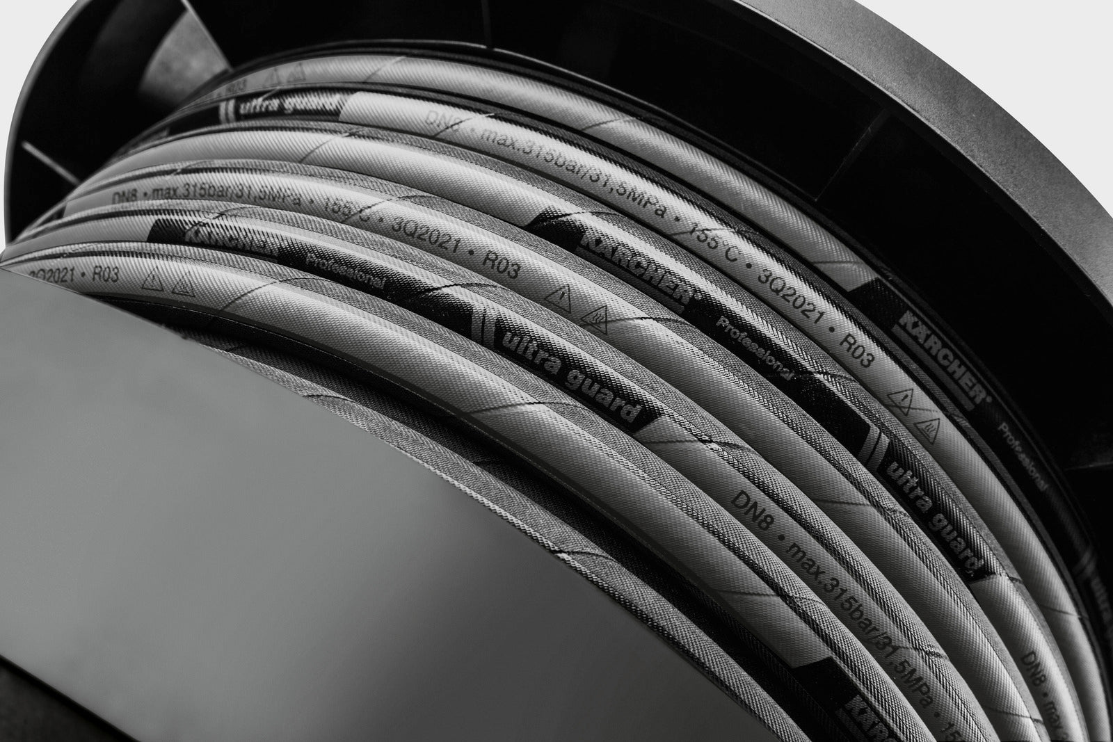 - Enrouleur de flexible automatiqueEnroulement et déroulement automatiques jusqu'à un angle de 45°, même sous pression.Flexible haute pression Ultra Guard résistant à l'abrasion et lisse à revêtement Teflon®.Temps de préparation réduits de moitié.