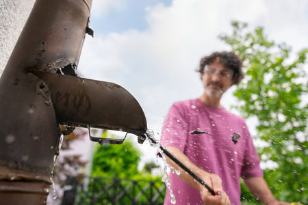Pratique et polyvalent : le kit de nettoyage pour tuyaux destiné au nettoyage des tuyaux, des évacuations et des tuyaux de descente ainsi qu'à une élimination efficace des obstructions. La fourniture inclut 2 buses différentes qui se changent rapidement grâce au raccord fileté. Avec 4 jets haute pression dirigés vers l'arrière, la buse à jet dispose d'une poussée puissante, idéale pour les tuyaux de descente et pour l'élimination des blocages solides. La buse rotative sert au nettoyage courant préventif. Avec son effet de nettoyage à 360°, les dépôts sur les faces intérieures des tuyaux sont efficacement éliminés. Ainsi, les obstructions n'ont aucune chance de se former. Grâce à la forme optimisée des buses, ces dernières sont reliées au flexible haute pression par une transition sans arêtes. Cela réduit le risque que la buse reste accrochée dans le tuyau. Le flexible de qualité souple de 15 mètres est renforcé par une tresse textile, pour une utilisation facile dans les tuyauteries coudées. Le flexible avec protection contre le pliage et les raccords en laiton garantissent une longue durée de vie. Compatible avec tous les nettoyeurs haute pression Kärcher des classes K 2 à K 7 pour une utilisation dans la maison et en extérieur.