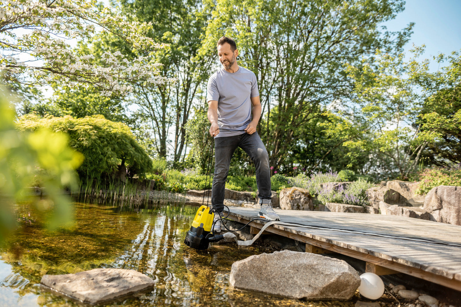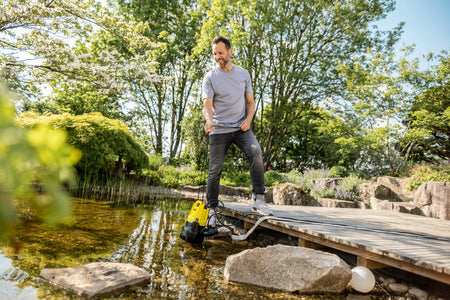 - Pour les situations difficiles : la pompe d'évacuation est conçue pour le pompage de grands bassins de jardin, d'excavations ou en cas de caves inondées