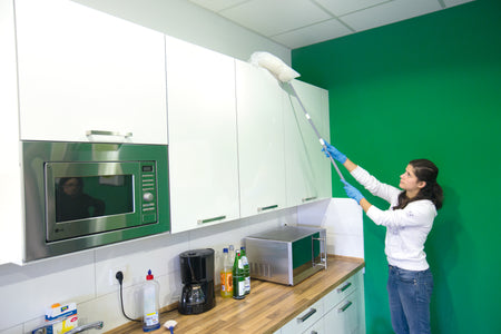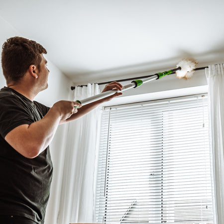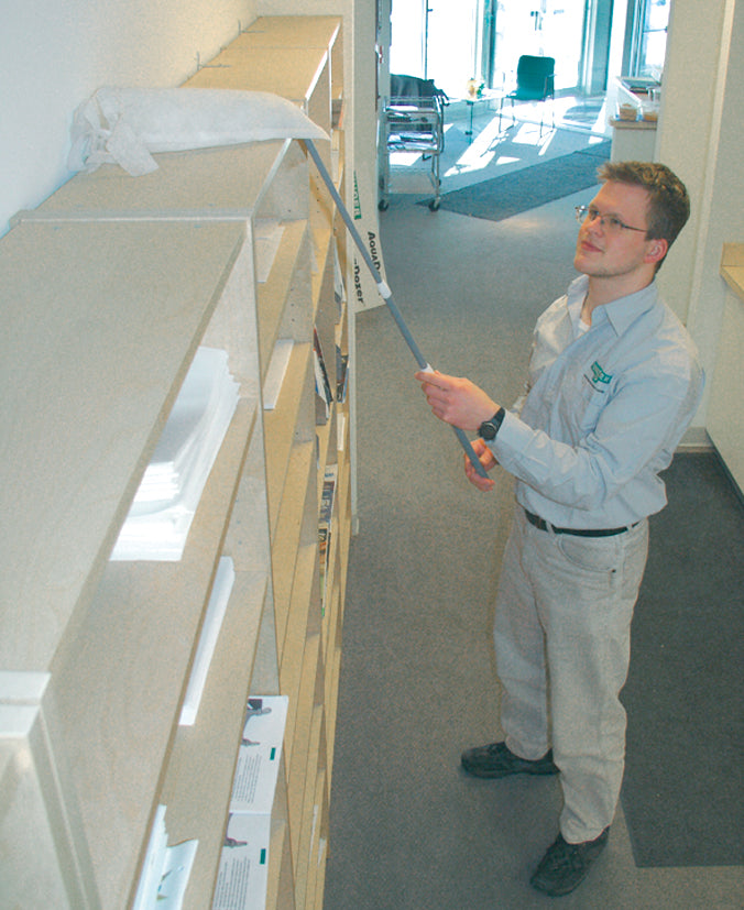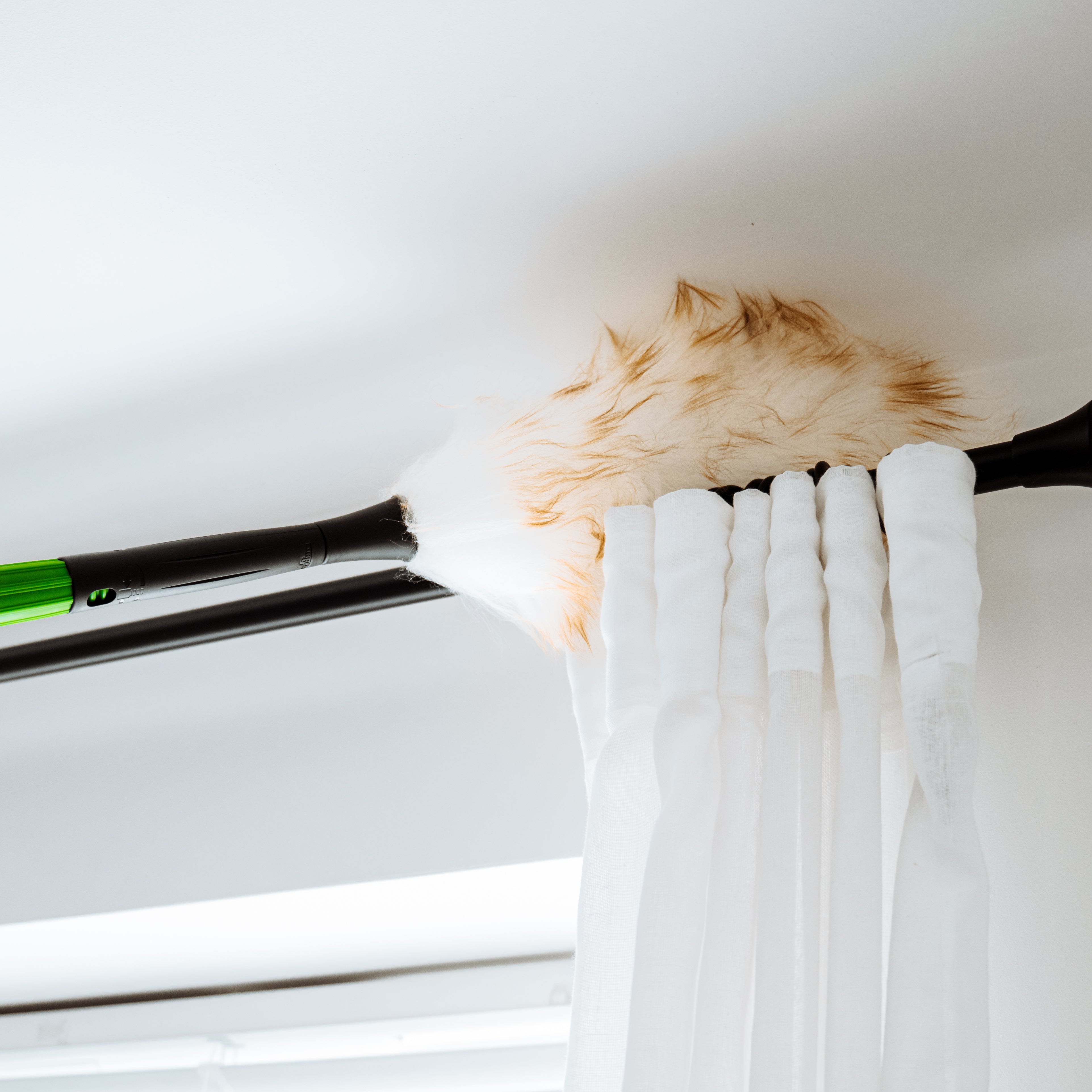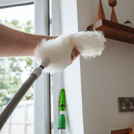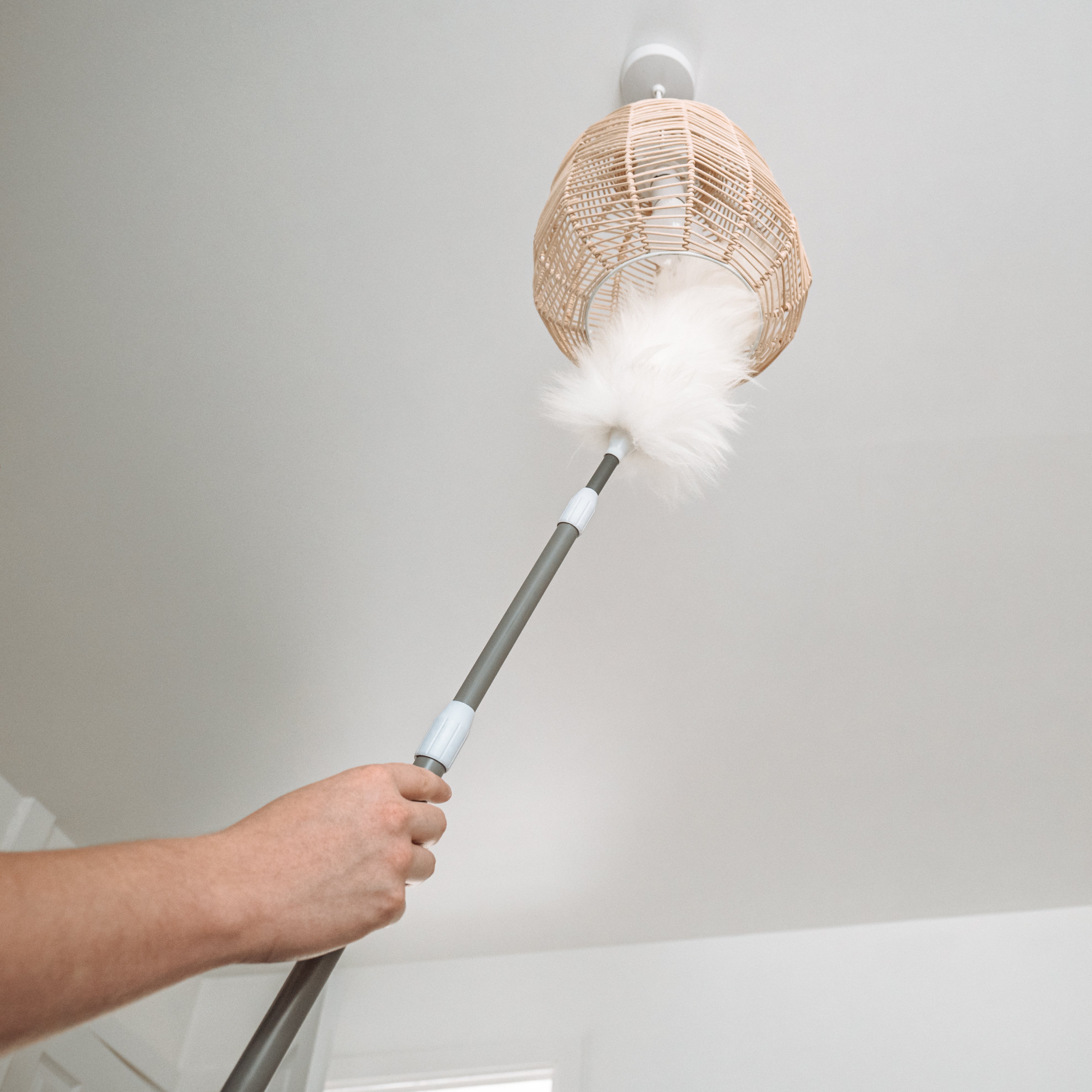 Plumeau en laine d’agneau télescopique en 3 éléments. Convient parfaitement au dépoussiérage des surfaces en hauteur. Y compris revêtements de rechange.