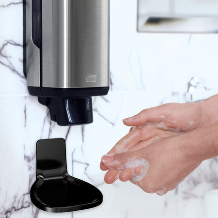 Savons, désinfectants et lotions font partie intégrante de l'hygiène et des soins de la peau, mais ils sont souvent projetés au sol pendant l'utilisation. Protégez vos sols des gouttes et facilitez le nettoyage avec la Protection de sol Tork. Son plateau intégré garde tous vos sols propres et vous permet de placer le distributeur là où il est le plus utile. Installez-le en un rien de temps sous le distributeur de soin pour la peau grâce au tampon autocollant très pratique.