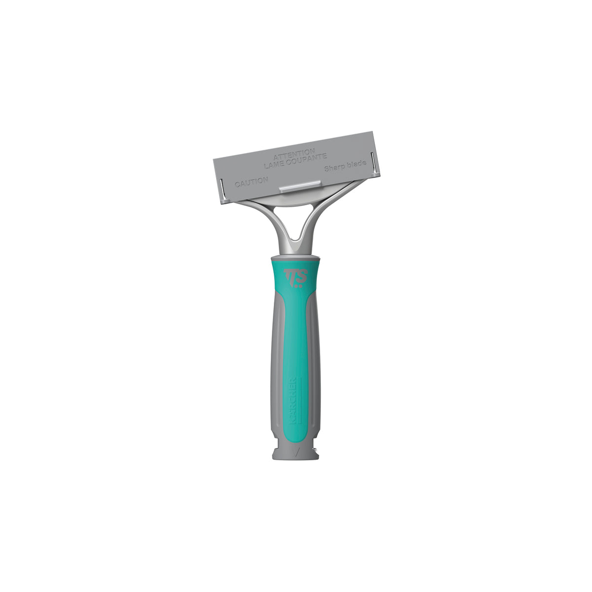 Petite raclette en métal de Kärcher. Avec lame, couvercle de protection et poignée courte. Lames de rechange disponibles, adaptée à l'utilisation avec le manche télescopique en aluminium.