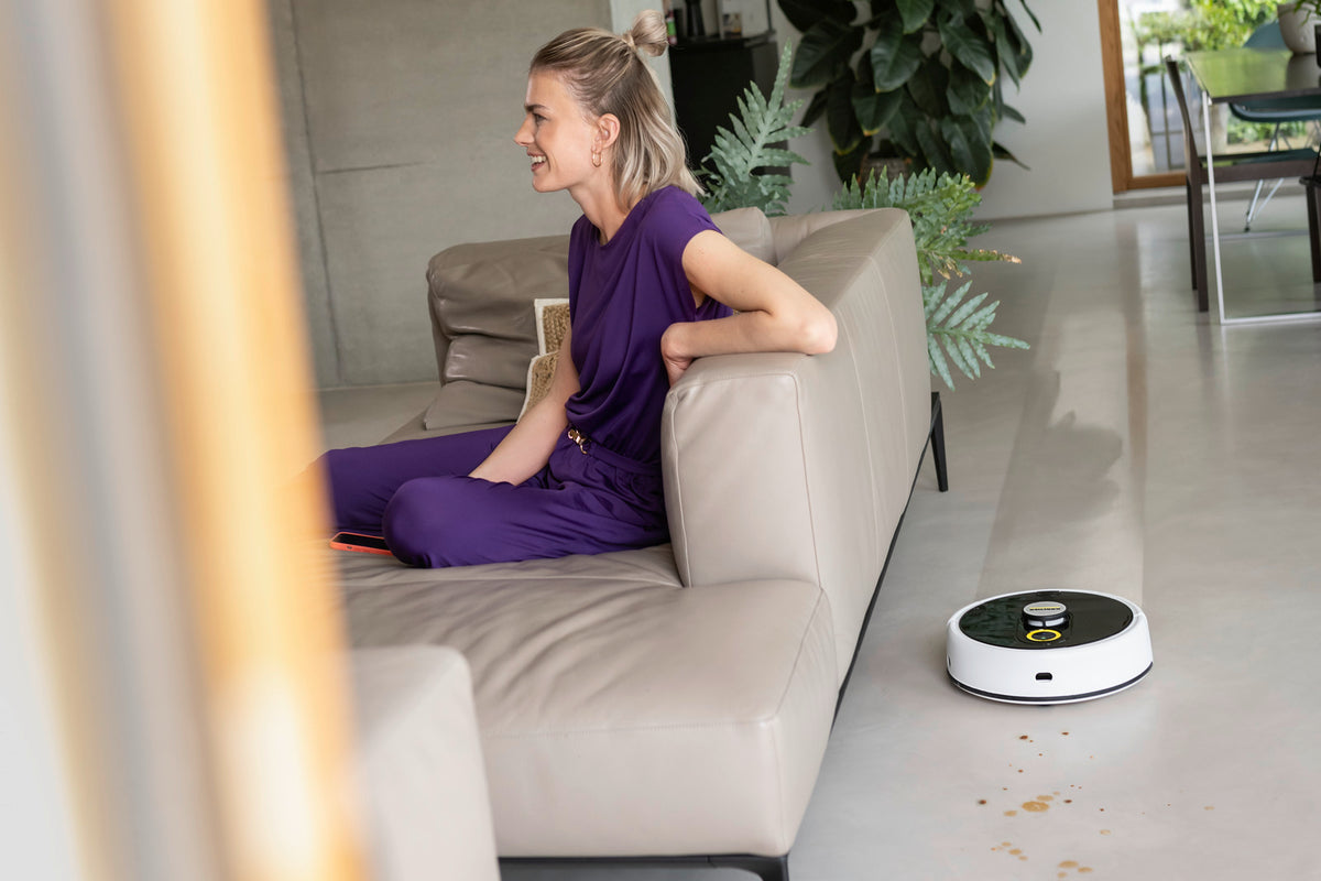 - Système à deux réservoirs avec indication du niveau de remplissageAvec système à deux réservoirs ingénieux : le rouleau microfibres est constamment humidifié à l'eau propre provenant du réservoir d'eau propre. L'eau usagée et la saleté sont collectées dans le 2e réservoir.Les indications de niveau de remplissage des réservoirs permettent de savoir si le réservoir d'eau sale est plein ou si le réservoir d'eau propre est vide. Dans les deux cas, le robot interrompt son travail et retourne à la station de recharge.L'indication s'effectue de manière visuelle par des LED situées directement sur le nettoyeur robot ainsi que par une notification dans l'application.