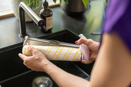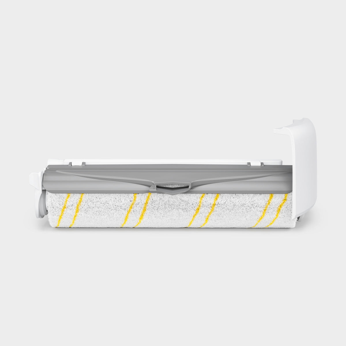 Le rouleau universel en microfibres haut de gamme pour le laveur robot RCF 3 de Kärcher permet un nettoyage humide en douceur de tous les sols durs, y compris le parquet. Le rouleau est non pelucheux, très absorbant et extrêmement résistant – idéal pour les trajets de nettoyage prolongés et un résultat propre, sans traces. Si le rouleau doit être remplacé ou nettoyé, le changement se fait en un clin d'œil, sans outils ni contact avec la saleté. Il suffit de retirer le rouleau usagé, d'encliqueter le nouveau rouleau et voilà. Le rouleau universel peut être lavé en machine jusqu'à une température de 60 °C puis réutilisé.