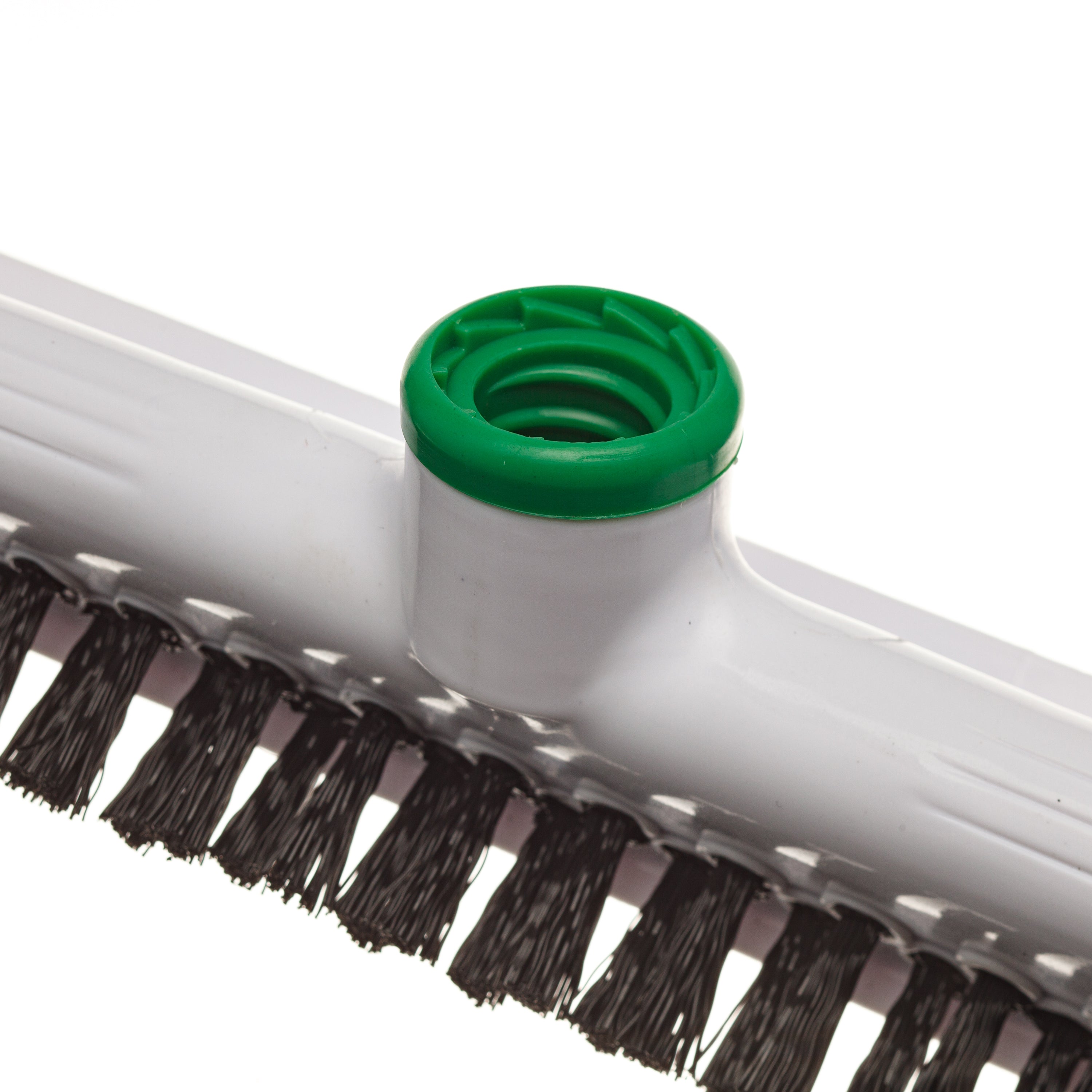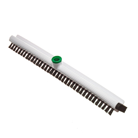 2 outils en un : Brosse en poils en polypropylène et raclette avec double lame en caoutchouc mousse noir. Filet ACME.