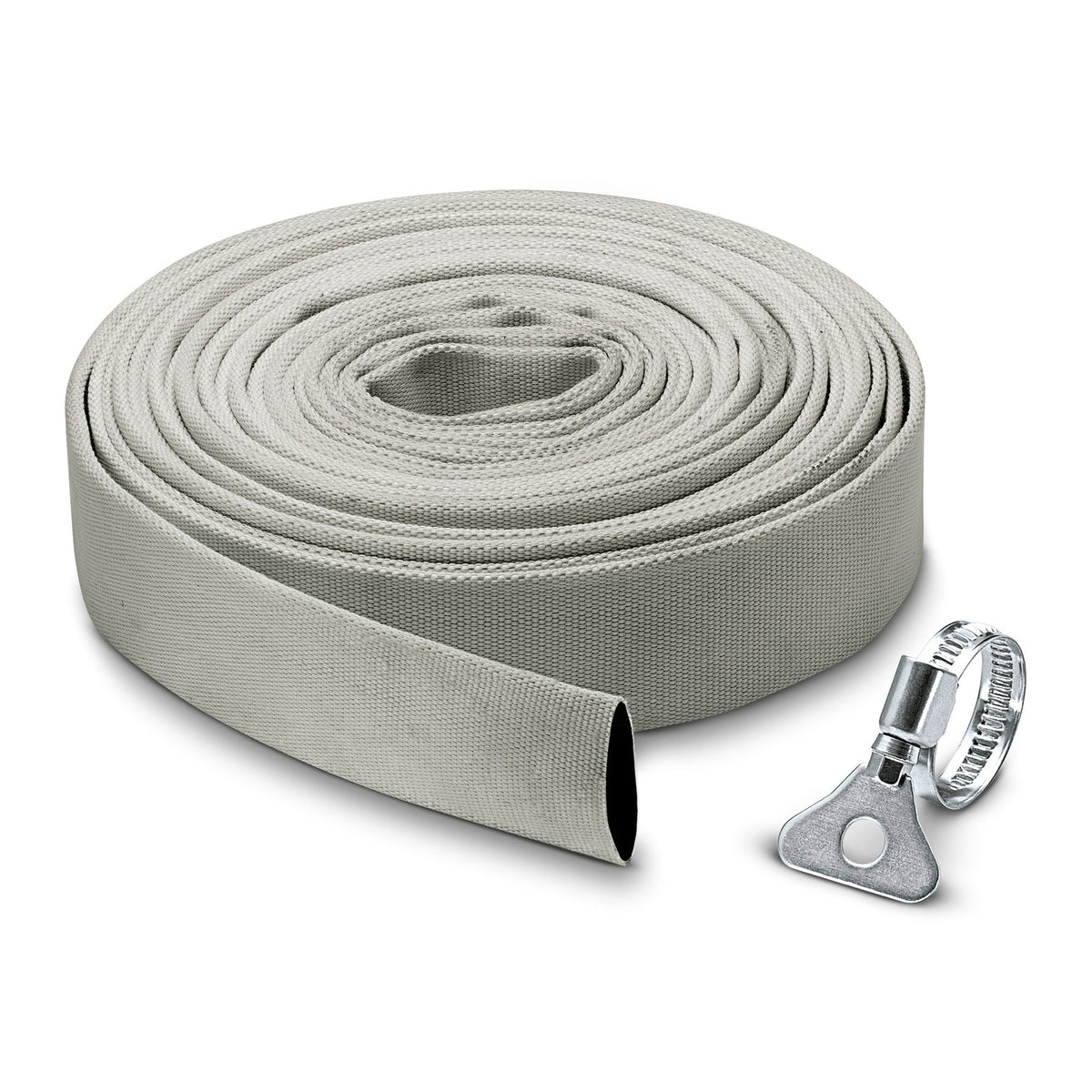 Le kit est composé d'un flexible plat 1 1/4" souple et d'un collier de serrage en acier inoxydable (30 à 40 mm) avec vis papillon pour un raccordement sans outils. Le kit flexible tressé de Kärcher est particulièrement adapté à l'utilisation avec des pompes d'évacuation pour eau claire et eau sale. Il constitue la solution idéale pour l'évacuation de grandes quantités d'eau, par exemple en cas d'inondation. Le flexible d'une longueur de 10 mètres peut être enroulé à plat, ce qui permet un stockage particulièrement peu encombrant. La pression d'éclatement maximale est de 5 bar.