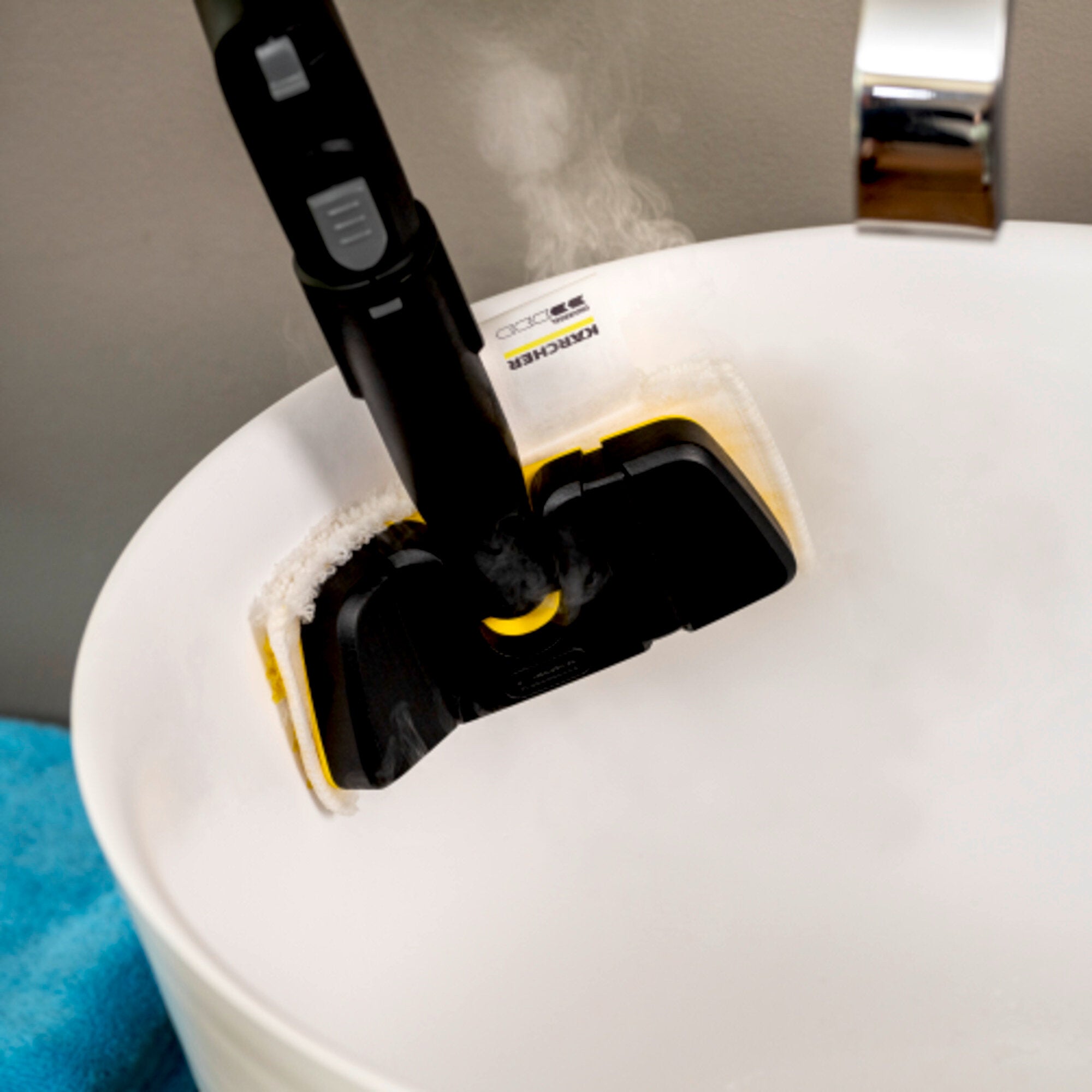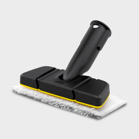 Le set suceur à main souple se compose d'un suceur à main doté d'ailettes latérales souples ainsi que d'une lingette en microfibres haut de gamme. L'association des deux assure une propreté optimale sur les surfaces droites et courbes difficiles à atteindre. Le suceur à main s'ajuste automatiquement à la surface correspondante en exerçant une légère pression. La lingette permet un ramassage des saletés particulièrement efficace grâce à son tissu textile à texture bouclée spéciale. La grande perméabilité à la vapeur permet d'excellents résultats de nettoyage hygiéniques : même les coins et les bords sont nettoyés en un clin d'œil. Grâce au système de bandes autoagrippantes, la lingette se fixe facilement et rapidement sur le suceur à main. Pendant le travail, la lingette reste bien en position et ne risque pas de glisser. Après le nettoyage, la lingette usagée peut être retirée du suceur à main sans contact avec la saleté.