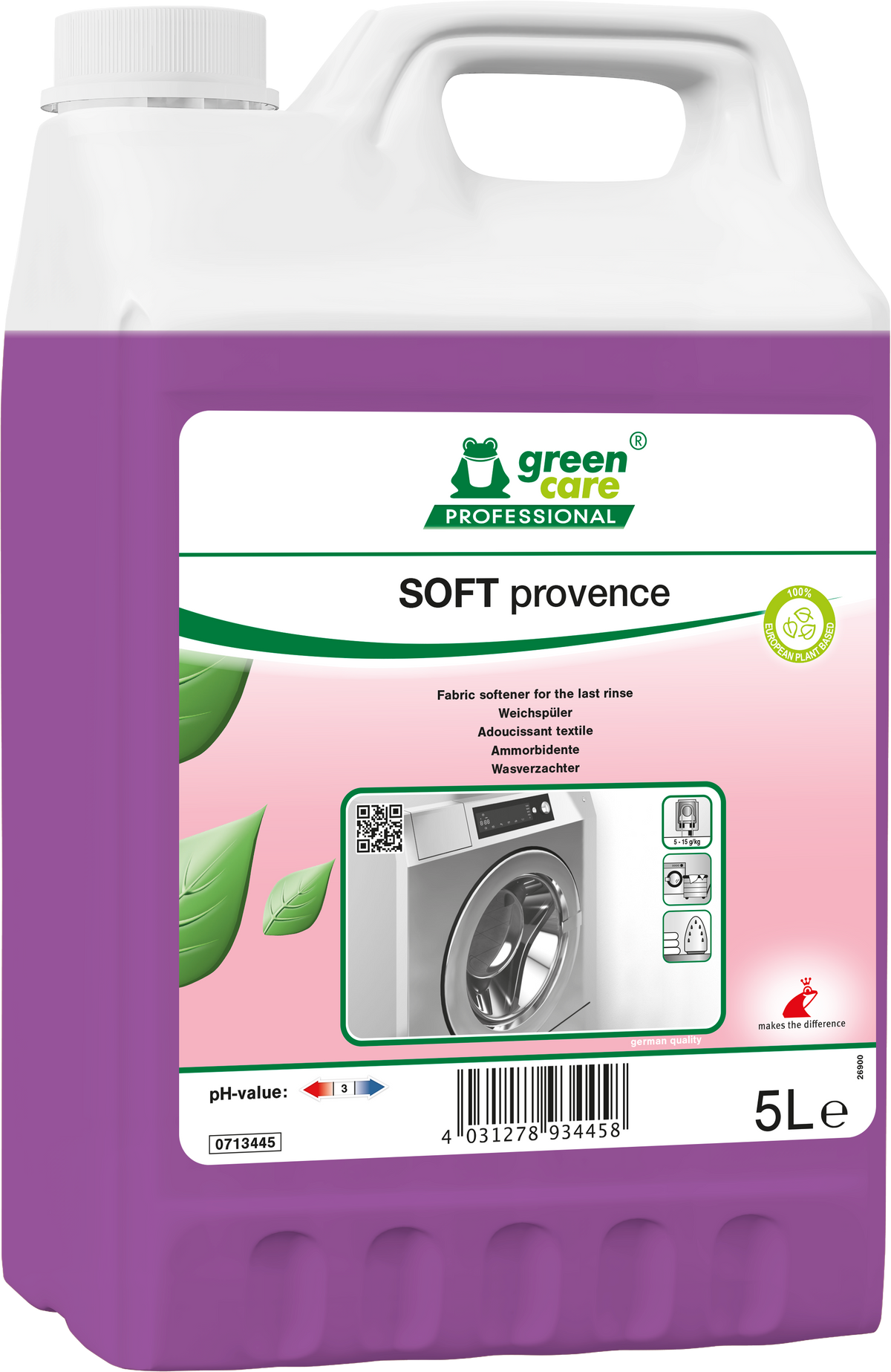 - SOFT provence est composé de tensioactifs 100% d'origine végétale européenne, renforçant la responsabilité environnementale, tout en rendant le linge soyeux et doux.
