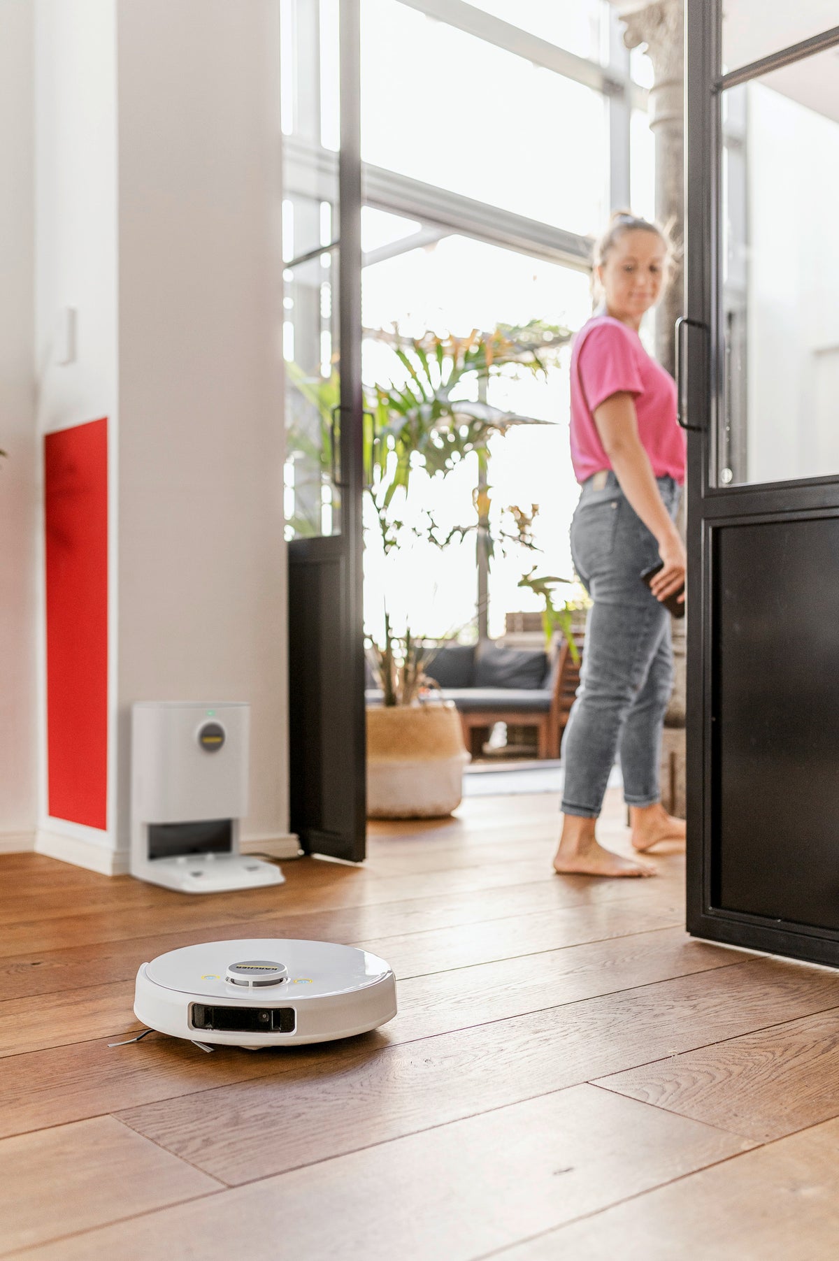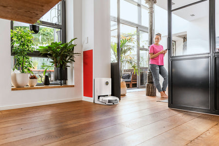 En association avec la station d'aspiration intelligente, l'utilisation du RCV 5 devient encore plus autonome. En effet, à partir de maintenant, le bac à poussière se vide automatiquement. Cette tâche pénible et souvent salissante est assurée par la station d'aspiration. La poussière et la saleté sont simplement aspirées de façon automatique dans le sachet filtre en non-tissé haut de gamme dès que le RCV 5 se raccorde à la station de recharge et d'aspiration, peu importe que ce soit après avoir terminé une tâche de nettoyage ou pour une recharge d'appoint. La saleté est collectée de manière fiable. Plus facile que jamais. Grâce à la fonction de charge de la station d'aspiration, la batterie du robot est rechargée par la même occasion.