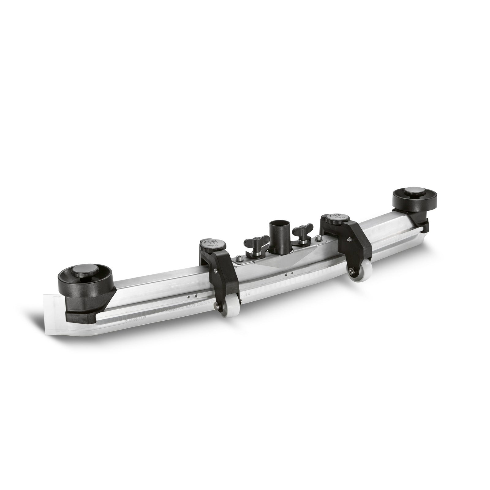 Coudé, avec roulettes d'appui. Lèvres d'aspiration en polyuréthane résistante à l'huile et transparente.