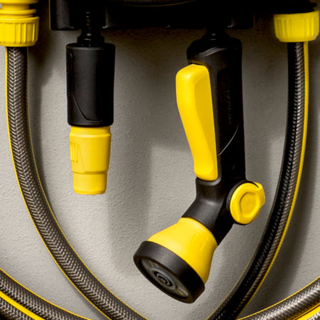 Simple d’utilisation, compact et discret : le support à flexible mural vous permet désormais de fixer le tuyau d’arrosage sans encombrer. Le support permet de ranger les pistolets et lances d’arrosage. Et tous les autres accessoires d’arrosage ou gants de jardinage y trouvent aussi leur place et sont ainsi toujours à portée de main. Lorsque vous ne l’utilisez plus, vous pouvez replacer le tuyau d’arrosage très facilement sur le support à flexible. Constitué de matériaux haute qualité, le support à flexible mural est particulièrement résistant aux UV et au gel. Kärcher vous offre en outre une garantie de 5 ans sur le produit.