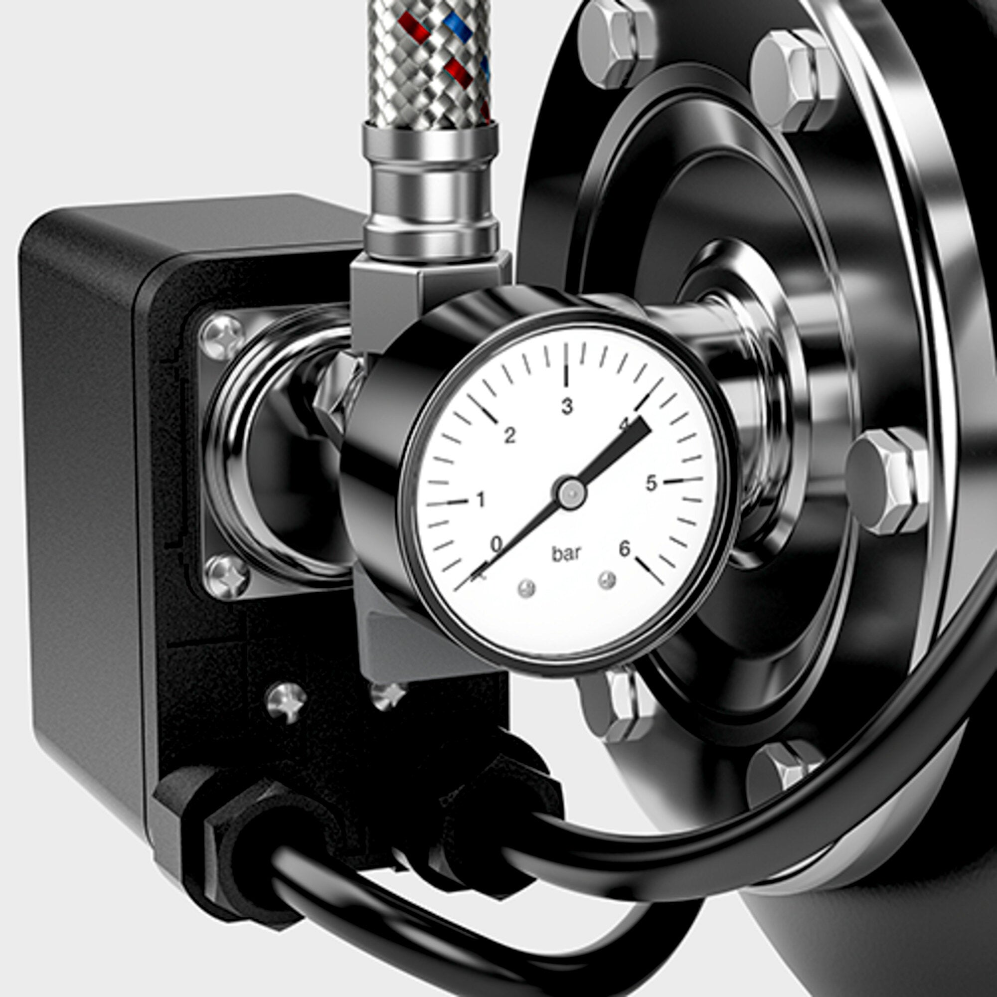 - Équipement complet : le surpresseur d'eau domestique est équipé d'un réservoir de compensation de pression de 24 l, d'un indicateur de pression, d'un clapet anti-retour et d'un fusible thermique