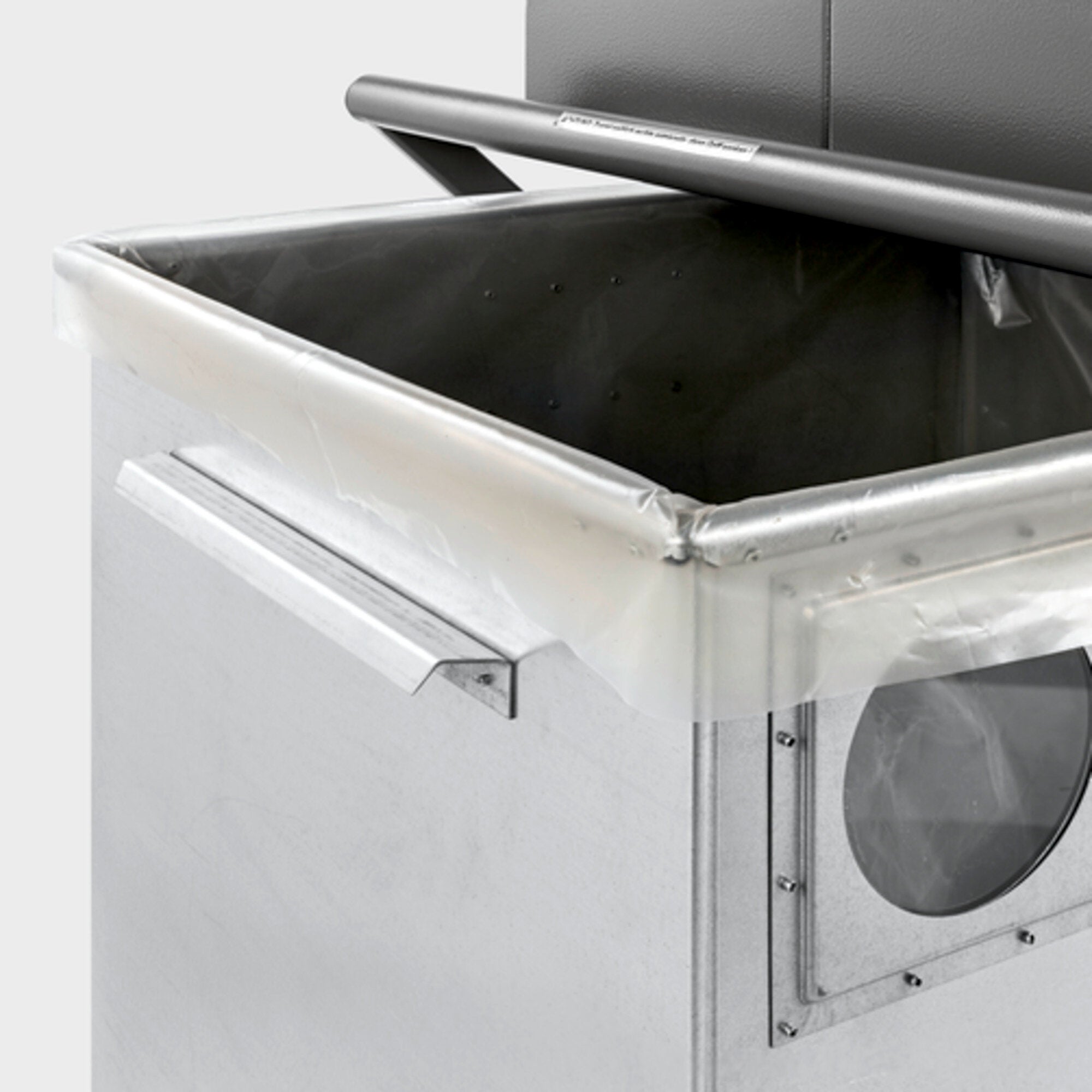- Système de vidage sans poussière pour les substances nocivesVidage sans poussières grâce au sac à déchets PE avec mécanisme de verrouillage intégré.Évacuation aisée de la poussière dans un sac à déchets PE.