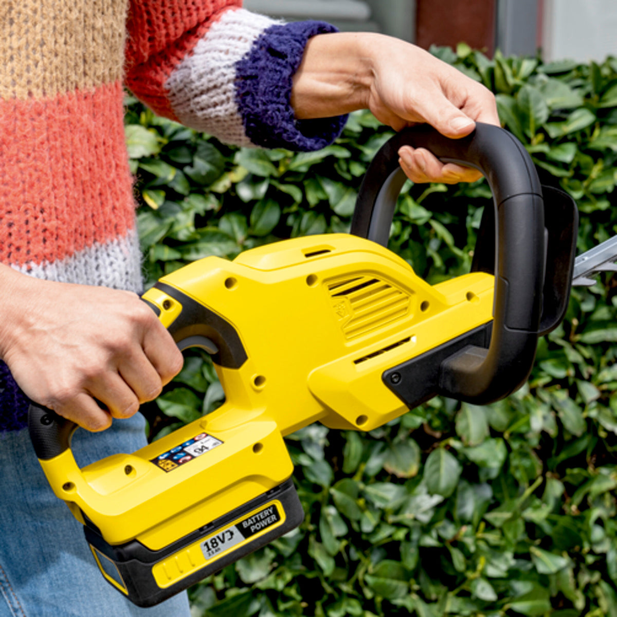 - Travail sans effort : avec ses 2,68 kg, le taille-haies HGE 18-45 de Kärcher est très léger. Vous ne ressentirez aucune fatigue dans les bras et les épaules, même pendant de longue session de travail