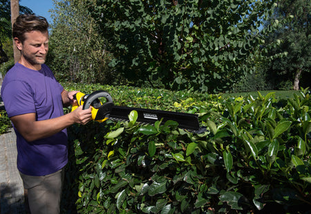 - Contenu : le kit contient un taille-haies HGE 36-60 Kärcher à batterie 36 V et un collecteur de déchets. La batterie 36 V Kärcher et le chargeur rapide compatibles sont disponibles séparément.