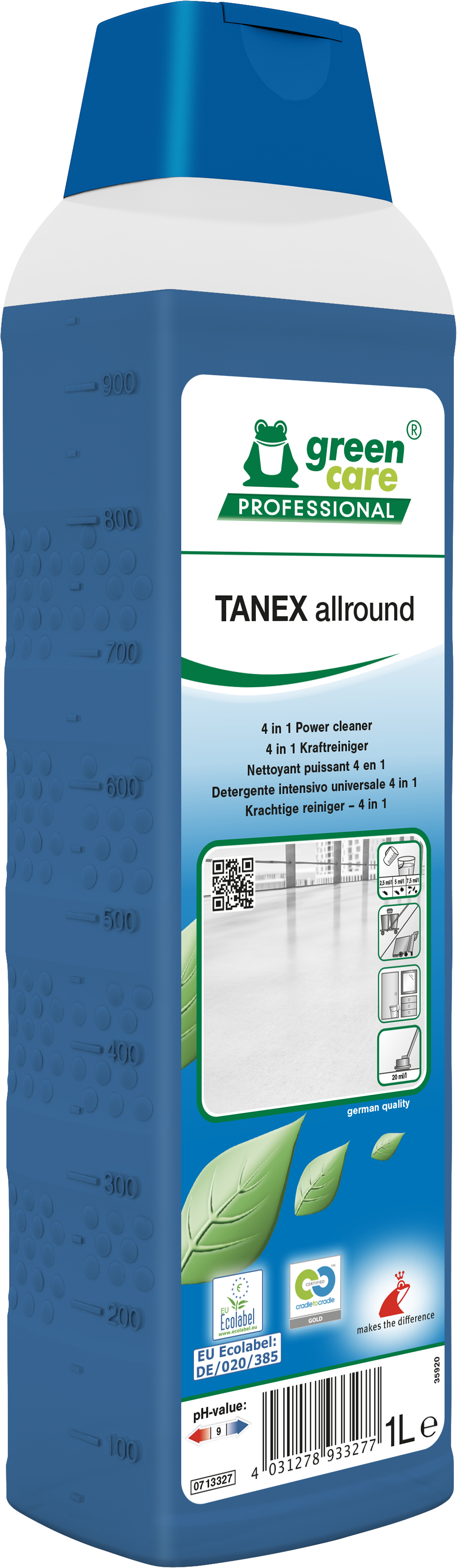 - TANEX allround est un détergent puissant 4 en 1 doté d'un fort pouvoir mouillant et faiblement alcalin. Il convient à tous types de sol et de surfaces résistant à l'eau.