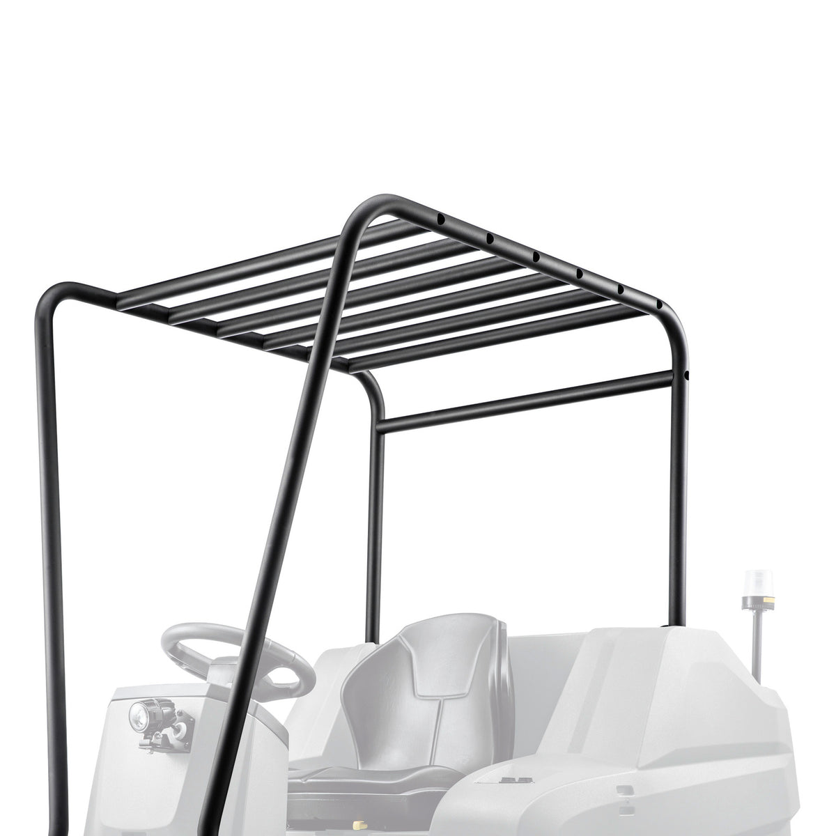 La structure tubulaire très solide du toit de protection pour notre balayeuse aspirante KM 100/120 R offre à l'utilisateur une protection maximale en cas de chute d'objets. Cette mesure de sécurité préventive, qui répond bien entendu aux dispositions légales de la norme DIN EN 60335-2-72, s'avère particulièrement utile lors du nettoyage dans les entrepôts à rayonnages hauts. Lorsque le toit de protection est installé, la hauteur totale de la balayeuse aspirante passe à 2 mètres.