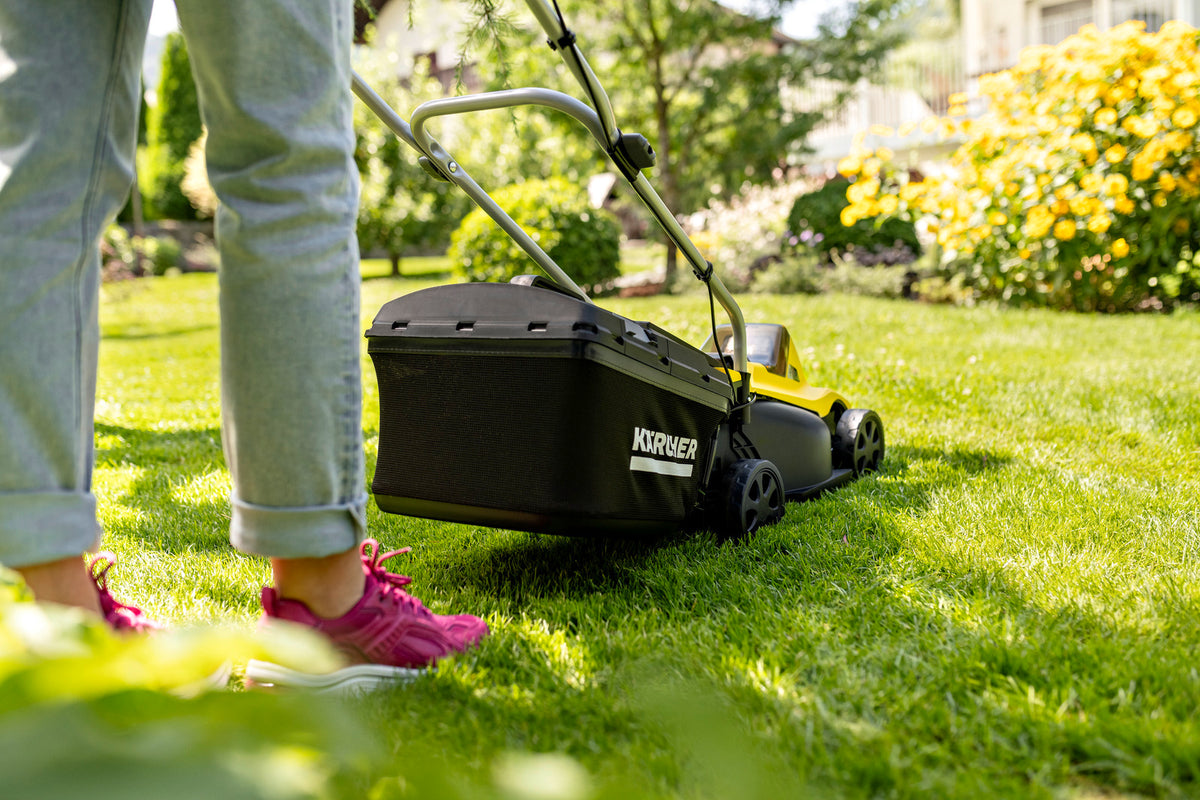 Légère et maniable : la tondeuse à batterie LMO 2-18 Battery Set d'une largeur de coupe de 32 centimètres est idéale pour les petites pelouses jusqu'à 250 mètres carrés. La hauteur de coupe est réglable sur 5 niveaux entre 25 et 60 millimètres. En association avec le puissant moteur sans balais, l'herbe est toujours coupée avec précision. Lors de la tonte le long des bordures ou des arêtes, les guide-herbes redressent les brins d'herbe pour une saisie optimale. L'herbe coupée est collectée dans le bac de ramassage de 30 litres. Le guidon réglable en hauteur garantit une posture droite et agréable pendant la tonte tandis que le design pliable permet un rangement peu encombrant. Grâce à sa poignée de transport, cette tondeuse à batterie légère peut également être portée jusqu'à son lieu d'utilisation, par exemple pour franchir des escaliers. Une batterie et un chargeur rapide sont inclus dans la fourniture.